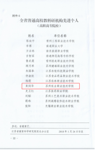 近日,江蘇省教育科學研究院發布《關于公布2017年度全省教科研系統先進集體和先進個人評選結果的通知》(蘇教科院2018[2]號)。經全省各級教科研機構評選推薦,省教科院組織專家評審,我院高職教育研究所榮獲2017年度全省教科研系統“先進集體”稱號,束劍華所長榮獲“先進個人”稱號。