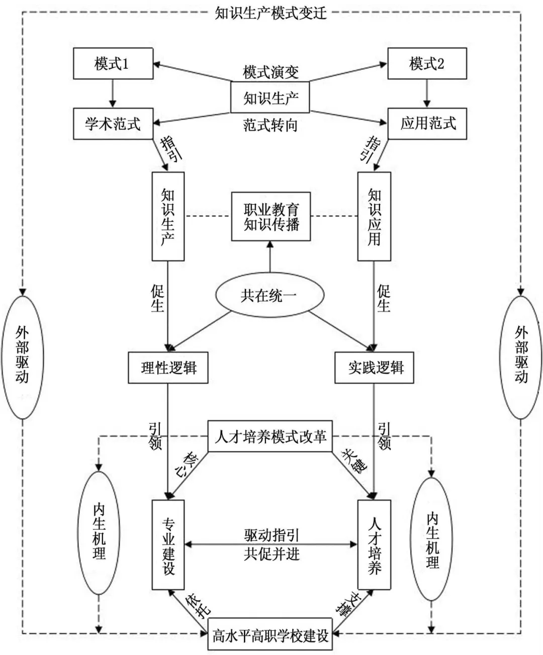 (一)人才培養(yǎng)模式變革的外部動(dòng)力:以知識(shí)生產(chǎn)模式變遷驅(qū)動(dòng)高水平高職學(xué)校建設(shè)