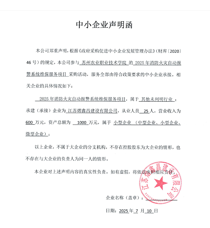 發布日期:2025-07-17蘇州農業職業技術學院關于2025年消防火災自動報警系統維保服務項目