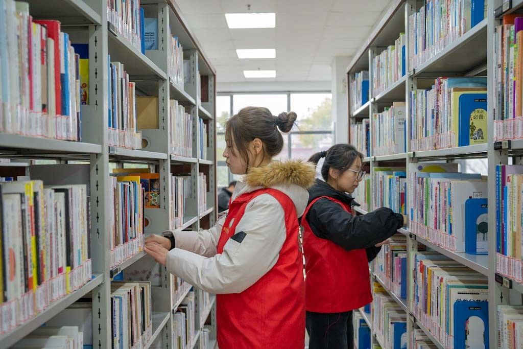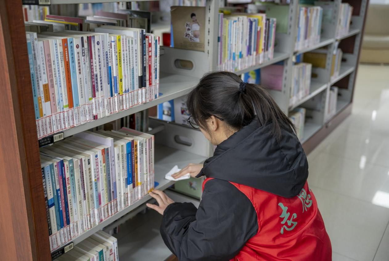 活動當天,志愿者們身著紅馬甲,分組投入圖書館的書籍整理與閱讀環(huán)境優(yōu)化工作。面對繁多的書籍分類任務,同學們細致耐心地按學科、文種和讀者需求進行歸類整理,同時協(xié)助館員維護閱覽秩序、引導讀者快速查找書籍。盡管工作量龐大,但志愿者們分工協(xié)作,高效完成了書架清潔、桌椅規(guī)整等任務,為讀者營造了整潔舒適的閱讀環(huán)境。