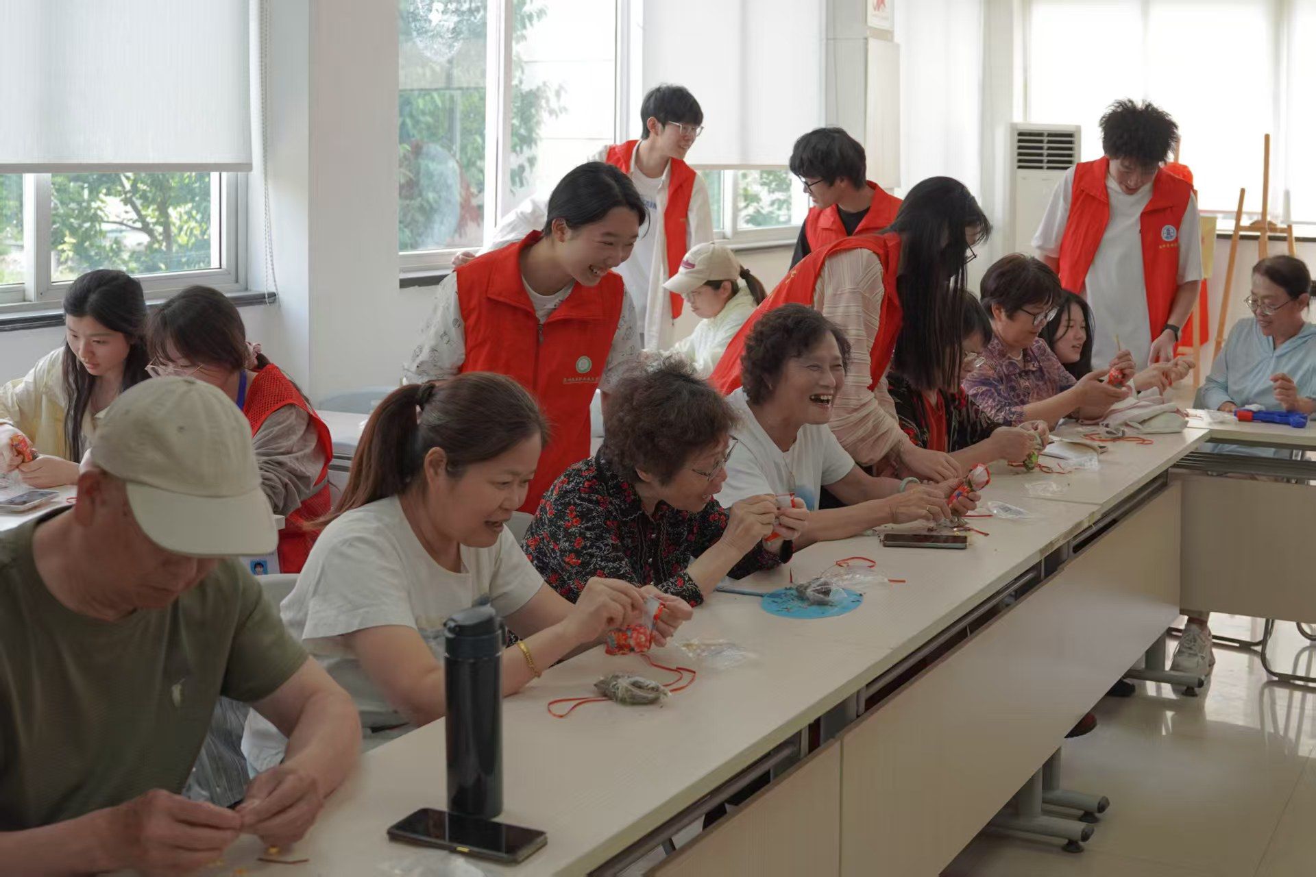 活動以 “龍舟載歌,耆樂融融” 聯歡為核心,《尋青》《致屈原》等節目,在傳遞傳統韻律與家國情懷的同時,厚植學生感恩意識;《相親相愛一家人》舞蹈生動詮釋 “老青共融”,展現資助育人閉環。民俗體驗環節中,學生志愿者結合中醫藥知識,指導老人制作香囊,在傳承非遺技藝的過程中,增強了文化傳承使命感與社會責任感。