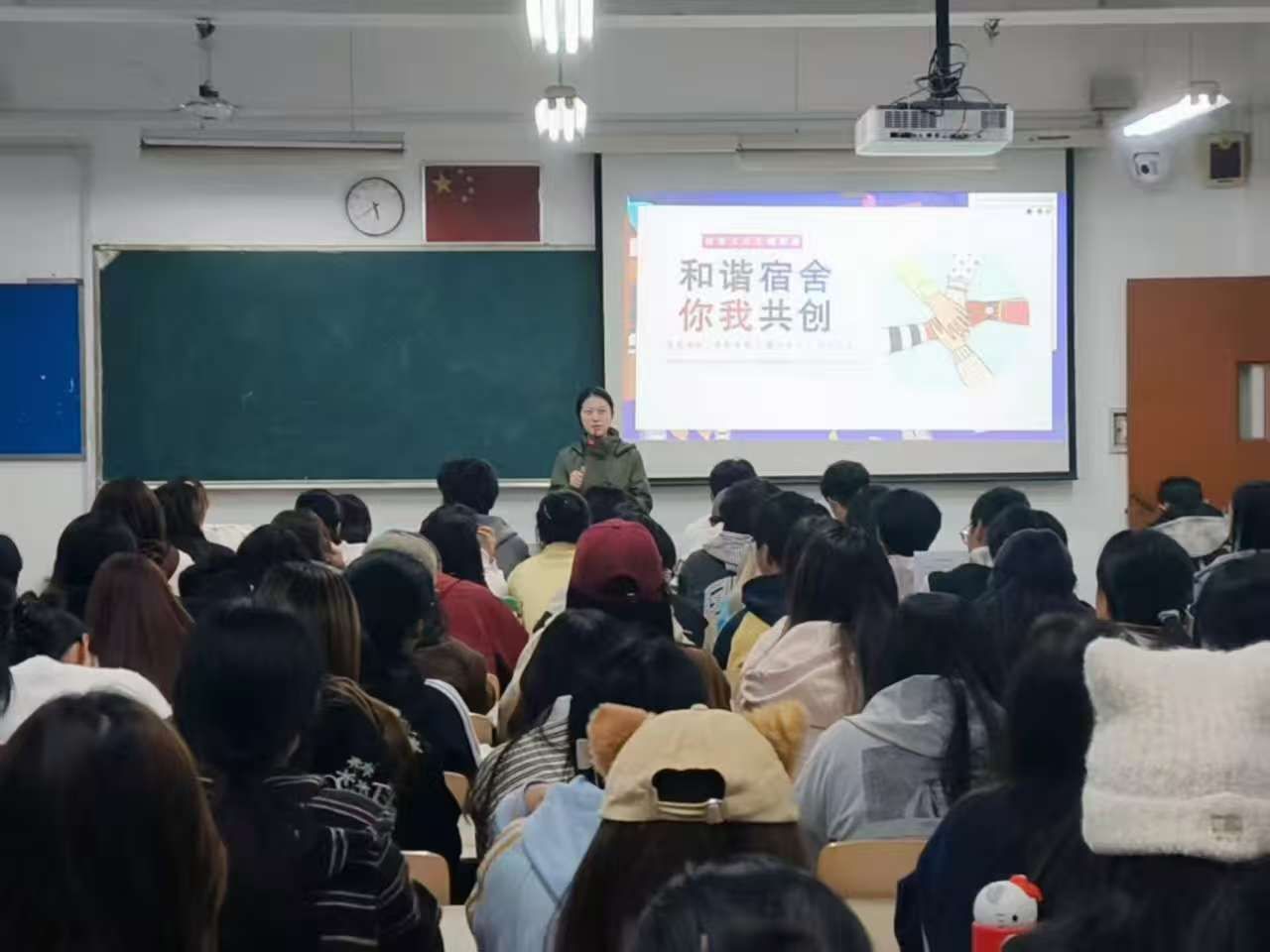 為加強新生宿舍管理,營造和諧溫馨的社區氛圍,10月26日晚,我院2025級新生宿舍長例會于和豐樓3504教室順利召開,全體新生宿舍長及年級輔導員楊海蓉與會。