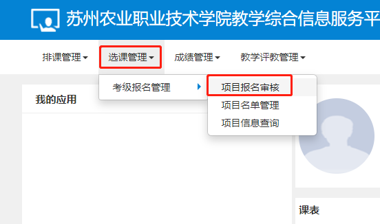 2. 【學(xué)生所屬學(xué)院】教學(xué)院長(zhǎng)在教務(wù)系統(tǒng)完成審批。(注意將角色切換成“二級(jí)學(xué)院教學(xué)副院長(zhǎng)”)