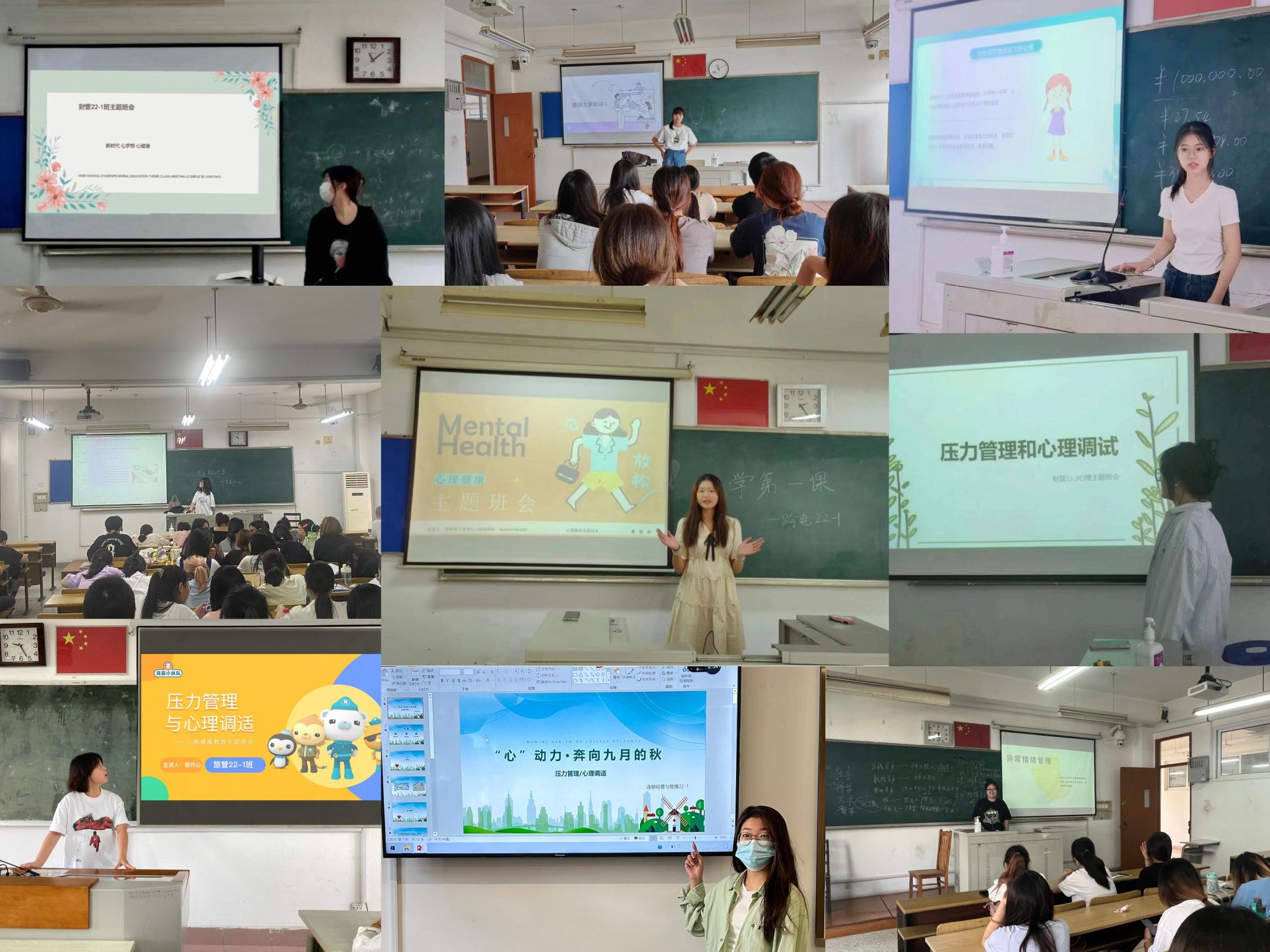 22級各班心理委員紛紛踴躍擔任班會主講人。班會主題廣泛,包括“情緒調節和開學適應”、“生涯發展和職業規劃”、“壓力管理和心理調適”、“學業任務與生活平衡”、“親密關系與人際溝通”、“原生家庭與自我成長”等。班會形式多樣,如5分鐘冥想練習、小組辯論賽、情緒傳遞游戲等,令人耳目一新。