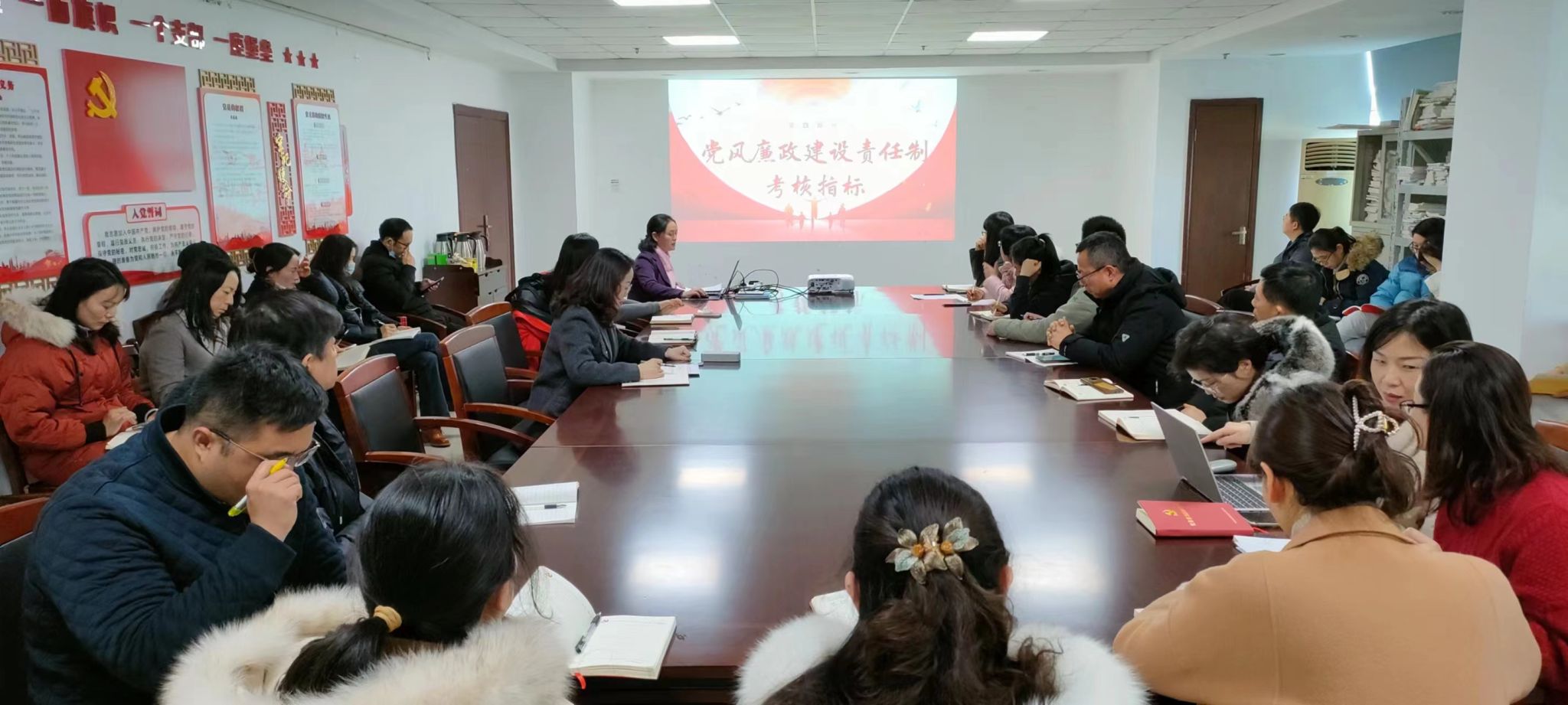 會(huì)上,黨總支書記徐建靈針對廉政專題進(jìn)行分享,主要從廉政的意義與內(nèi)涵、廉政建設(shè)中領(lǐng)導(dǎo)班子的作用、廉政建設(shè)的具體內(nèi)容、黨風(fēng)廉政建設(shè)考核具體指標(biāo)四個(gè)方面,結(jié)合院內(nèi)工作實(shí)際,深入淺出,讓全體黨員深刻認(rèn)識(shí)到全面從嚴(yán)治黨、持續(xù)深化黨風(fēng)廉政與反腐敗工作的重要意義。最后總結(jié)加強(qiáng)廉政建設(shè)工作的有效路徑:改進(jìn)教育方式,強(qiáng)化廉潔意識(shí);逐級(jí)開展教育,緊密聯(lián)系實(shí)際;緊扣優(yōu)勢專業(yè),融入廉潔文化;開展廉潔活動(dòng),樹立典型案例。