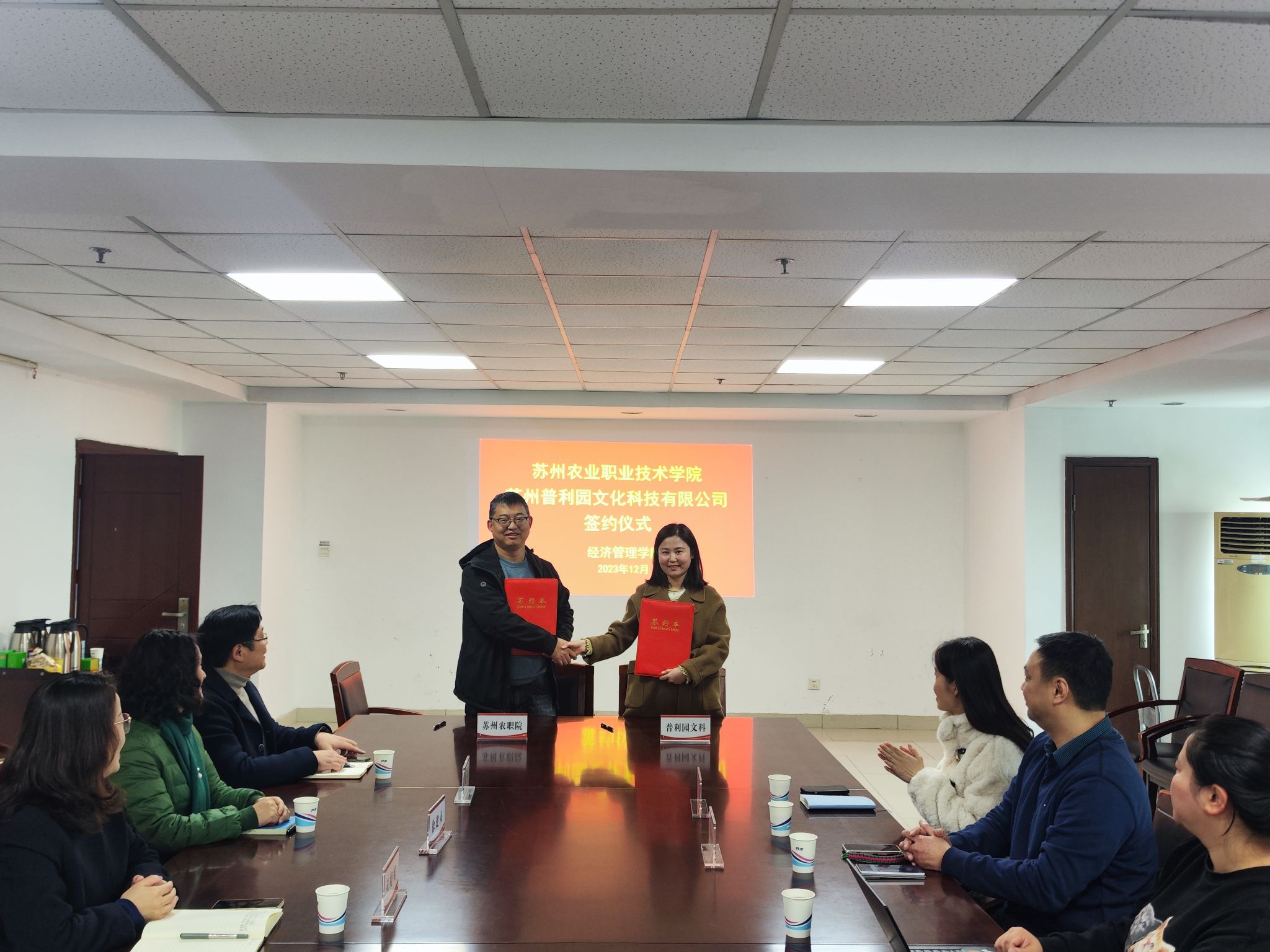 2023年12月27日,經(jīng)濟管理學院與蘇州普利園文化科技有限公司(以下簡稱“普利園”)達成戰(zhàn)略合作,并共同簽署校企合作協(xié)議。學校學黨委委員、副校長孔婷婷、經(jīng)濟管理學院黨政領(lǐng)導班子和相關(guān)教師參加了此次簽約儀式。