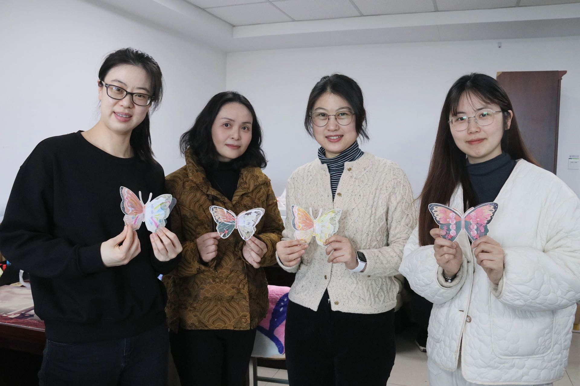 活動中,學生們熱情高漲,他們迫不及待地拿起畫筆和工具,將自己對老師的敬意和感激之情融入到每一個精心制作的立體蝴蝶書簽中。每一只蝴蝶都在學生們的手中變得栩栩如生。這些書簽不僅造型各異、色彩斑斕,還蘊含著學生們的巧思和祝福。一位收到禮物的老師表示:“這些書簽簡直太美了,它們是學生們對我們深深的敬意和祝福,這是我收到過最有意義的婦女節禮物,我會好好珍藏。”