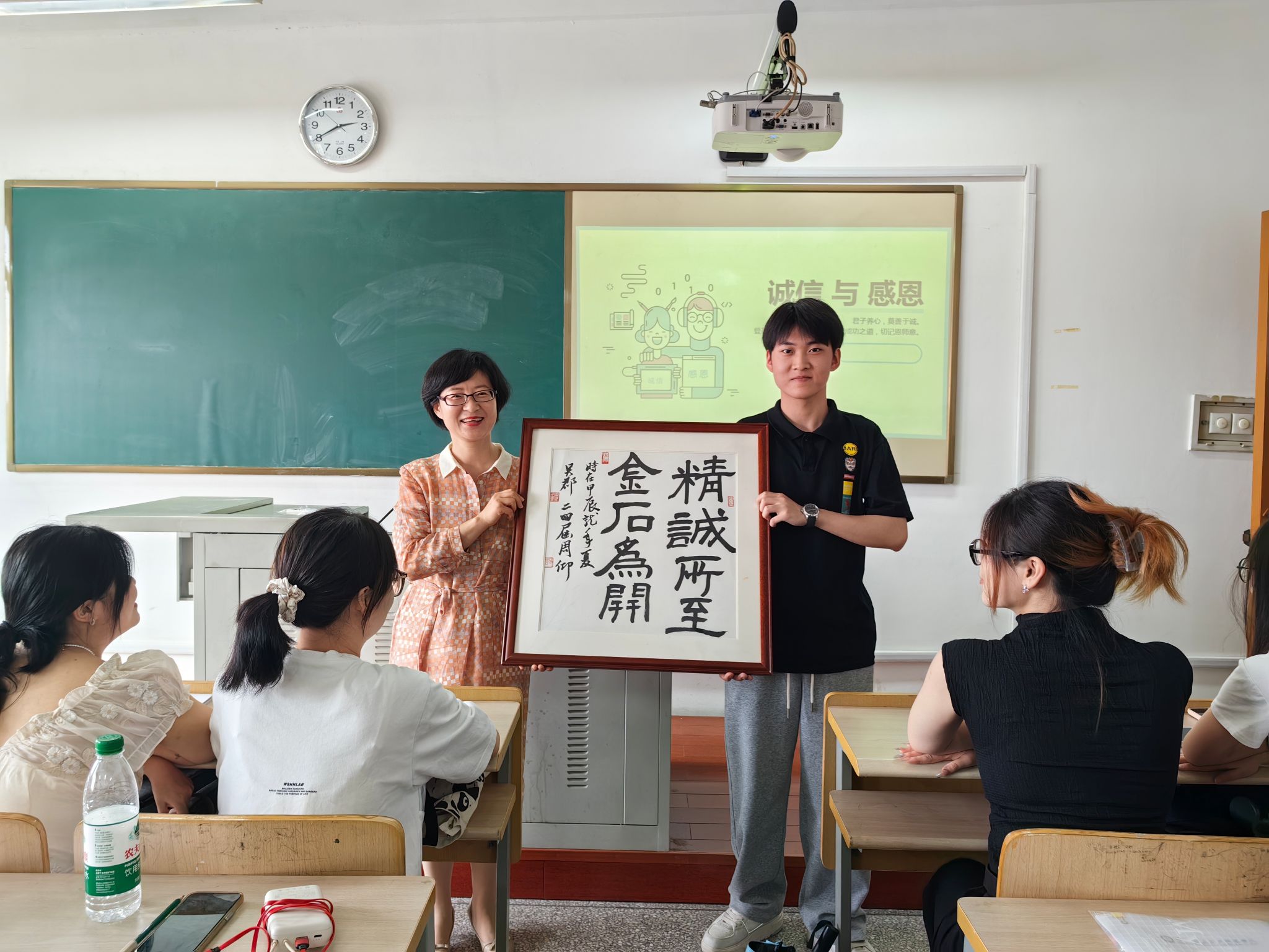 班會上,班主任強調誠信是立人之本,真誠是人際關系的基石,是社交的通行證。在即將步入社會之際,畢業生們更要言必誠信,行必忠正,明德守信。結合同學們在求職、生活過程中遇到的問題,闡述了誠實守信在工作生活中的重要作用。利用網絡上的一些典型案例,讓同學們深刻認識到言而無信的嚴重后果,警示大家珍惜自己的信譽,樹立誠信的良好形象。在感恩教育環節,班主任引導同學們回顧自己的成長經歷,思考在成長過程中得到的理解和支持。通過分享個人經歷和感悟,讓同學們感受到親友、師長的關愛和付出,激發他們內心的感恩之情,增強大家的感恩意識,并向想要感恩的人表達感謝之情。