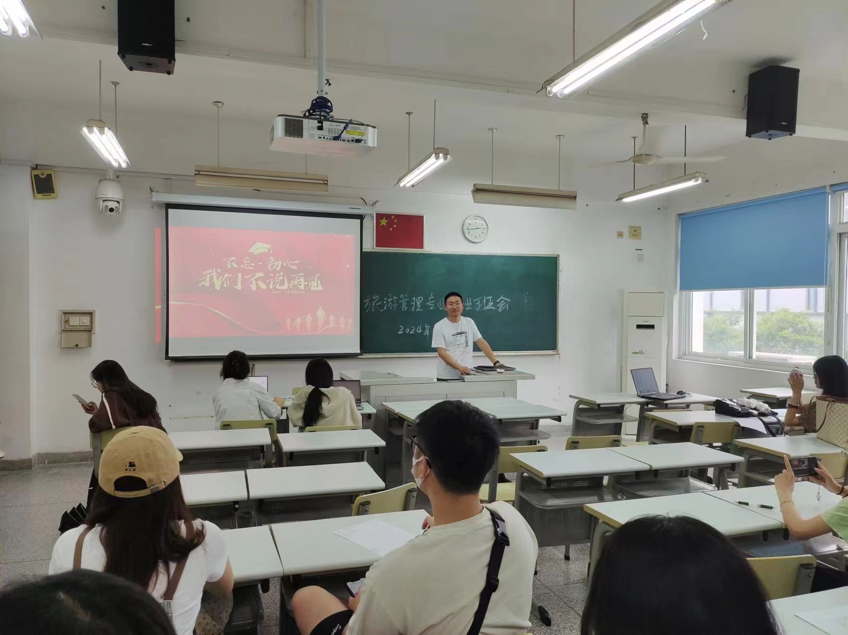 又是一年畢業季,2024屆畢業生即將與熟悉的大學生活說再見,開啟新的人生階段。為了幫助畢業生樹立正確的社會主義核心價值觀,增強誠信意識、感恩意識,為廣大畢業生踏上新的征程奠定堅實的基礎。2024年6月11日下午,經濟管理學院各畢業班召開了“青春不散場 夢想再啟航”、“不忘初心 我們不說再見”等主題班會,班會由各班班主任主持,全體畢業生參加。