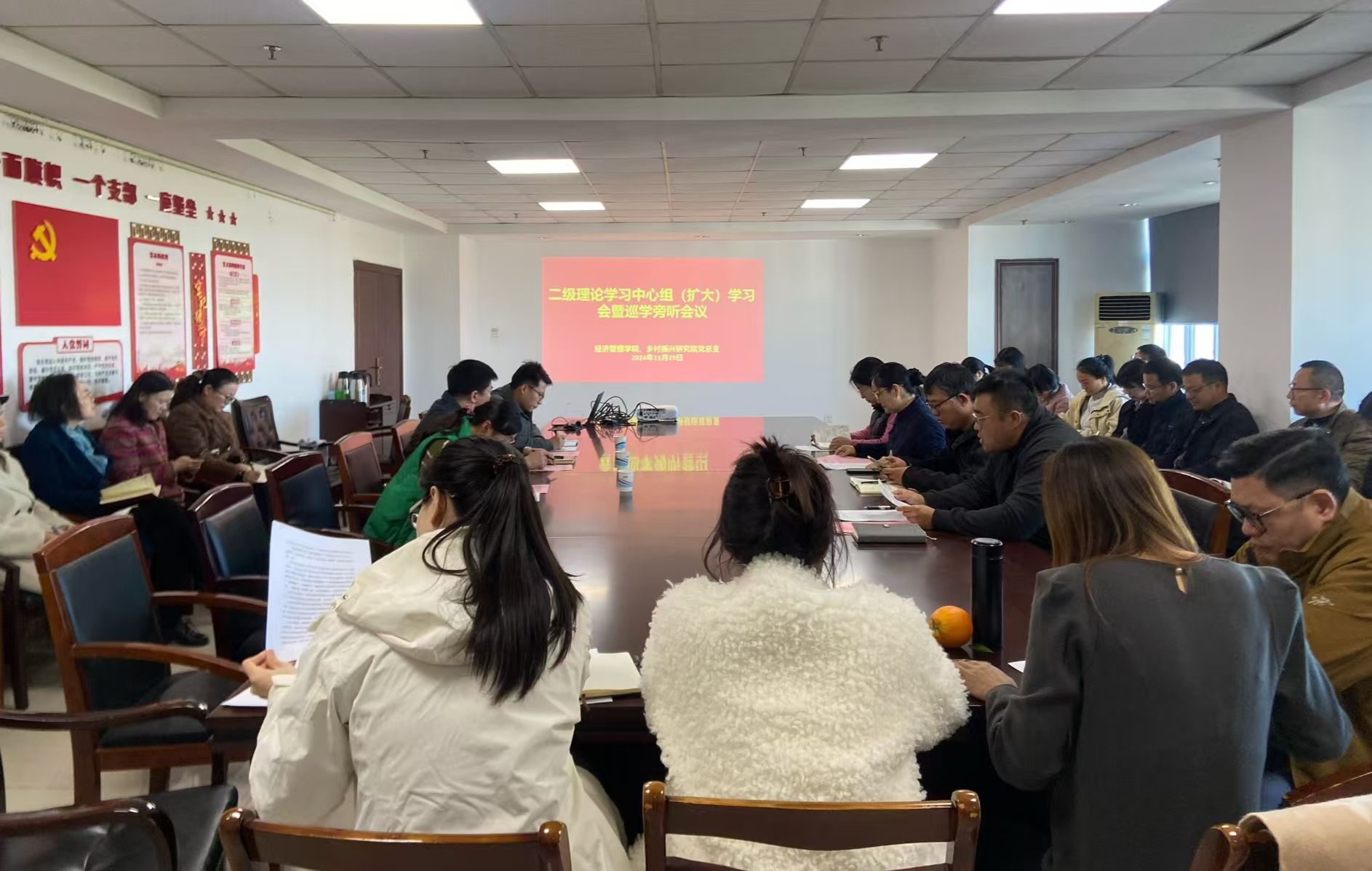 11月29日,經濟管理學院在行政樓606會議室召開了二級理論學習中心組(擴大)學習會暨巡學旁聽會議。校黨委委員、組織部部長耿曉東、繼續教育學院院長秦培亮和組織人事處史菁老師全程進行了巡學旁聽。經濟管理學院黨政領導班子成員和全體黨員老師參加了學習會。會議由黨總支書記徐建靈主持。