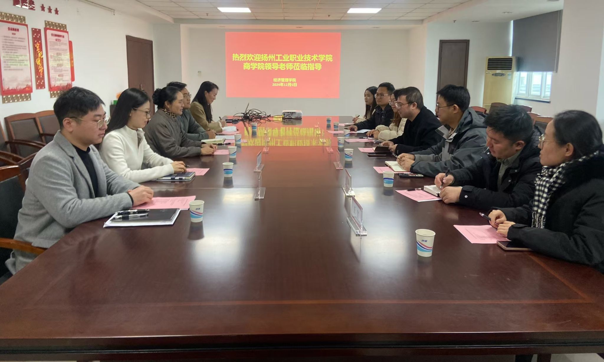12月5日,揚州工業職業技術學院商學院黨總支副書記施吉瑞一行7人來我院交流考察。黨總支書記徐建靈、副書記李光然以及學工條線輔導員參加了交流座談。