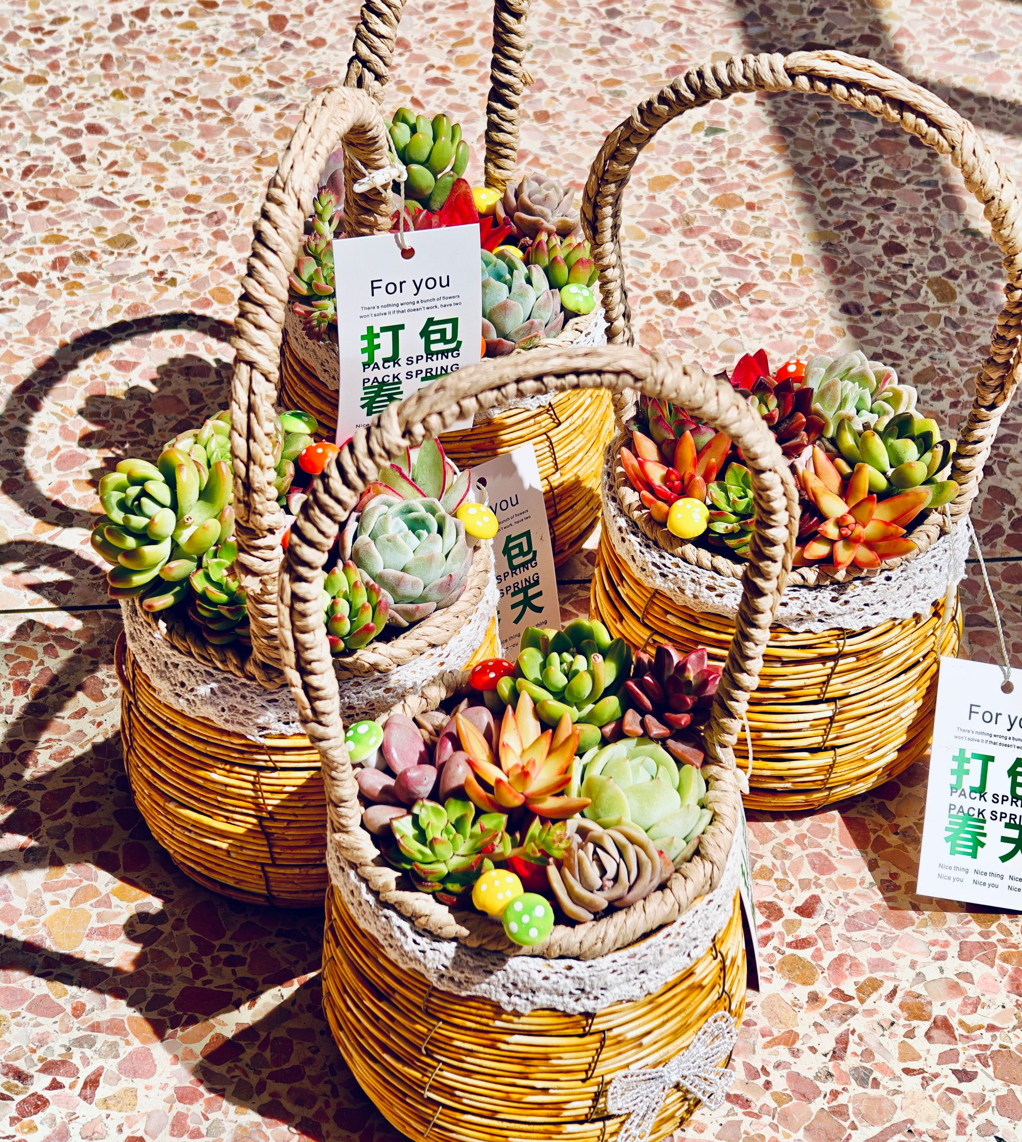 活動籌備緊扣經濟管理學科特色:多肉植物以“財富花”、“紅石蓮”、“黃金草”等品種為主,花籃選用竹編材質呼應環保理念,充分展現了學科特色與花藝美育的融合。