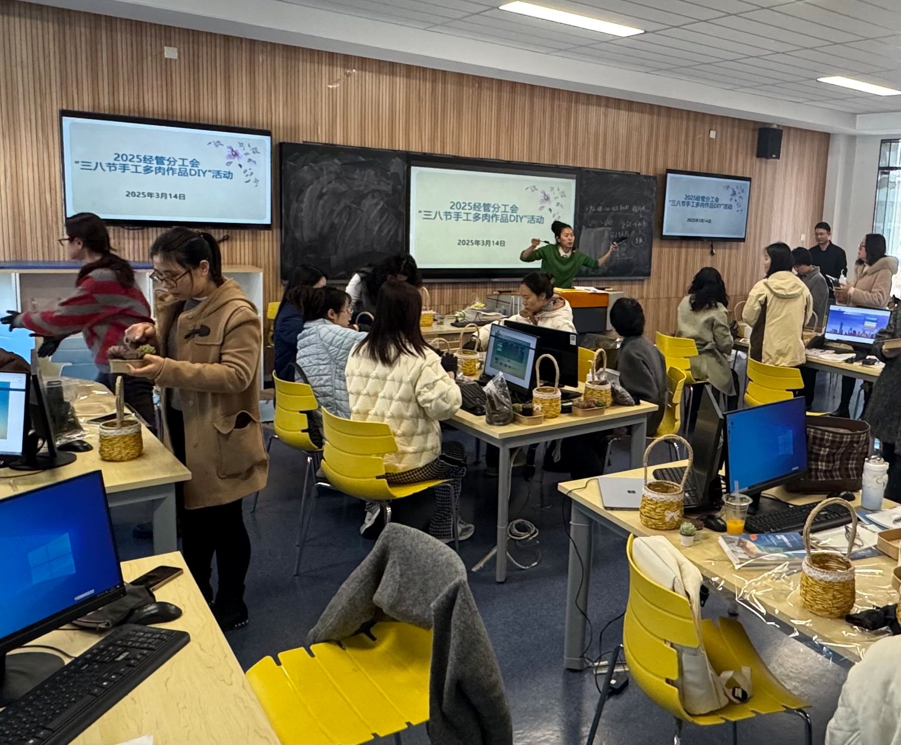 為慶祝第115個國際勞動婦女節,經濟管理學院分工會于3月14日下午在和豐樓2115實訓室舉辦“綠意指尖綻,芳華育桃李”主題手工活動,全院約40余名女教師積極參與。活動通過多肉植物DIY與綠色理念相結合,為女教師送上節日關懷。