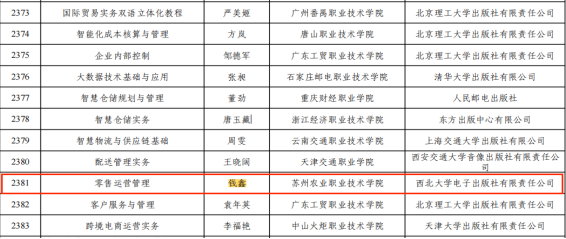 近日,教育部公布第二批“十四五”職業(yè)教育國(guó)家規(guī)劃教材名單,由我校錢鑫副教授和殷志揚(yáng)教授帶領(lǐng)的教材編寫(xiě)團(tuán)隊(duì)聯(lián)合行業(yè)企業(yè)專家共同編寫(xiě)的《零售運(yùn)營(yíng)管理》成功入選。這一榮譽(yù)的取得,既是對(duì)教材編寫(xiě)質(zhì)量與專業(yè)價(jià)值的高度認(rèn)可,更是我校深化校企合作、推進(jìn)產(chǎn)教融合成效的的生動(dòng)體現(xiàn)。