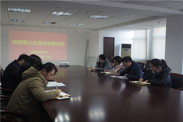 為順利迎接學(xué)院第三屆黨代會召開,2018年12月13日上午,經(jīng)濟(jì)管理學(xué)院黨總支在606會議室舉行專題座談會。參加座談會的由學(xué)院副院長孔婷婷、經(jīng)管院院長顧金峰和經(jīng)管院全體黨代表。活動由黨總支書記袁蘊(yùn)潔主持。