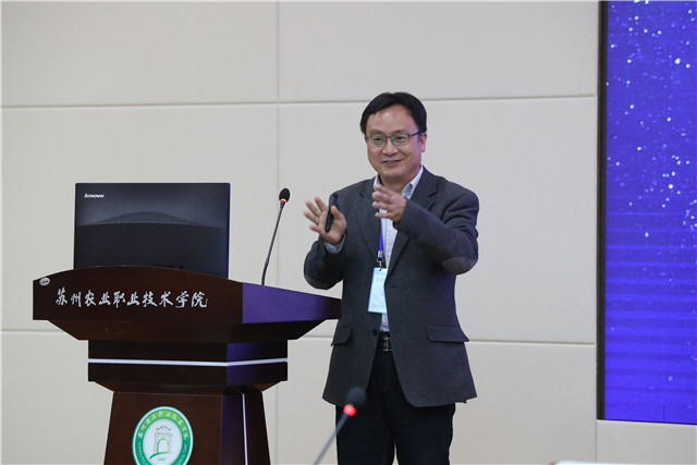 論壇由我院經(jīng)濟管理學院顧金峰院長、莊誠副教授主持。傅兵院長代表蘇州農(nóng)業(yè)職業(yè)技術學院黨、政班子向論壇致辭。江蘇省人大常委會農(nóng)業(yè)和農(nóng)村工作委員會吳沛良博士應邀做主旨演講。