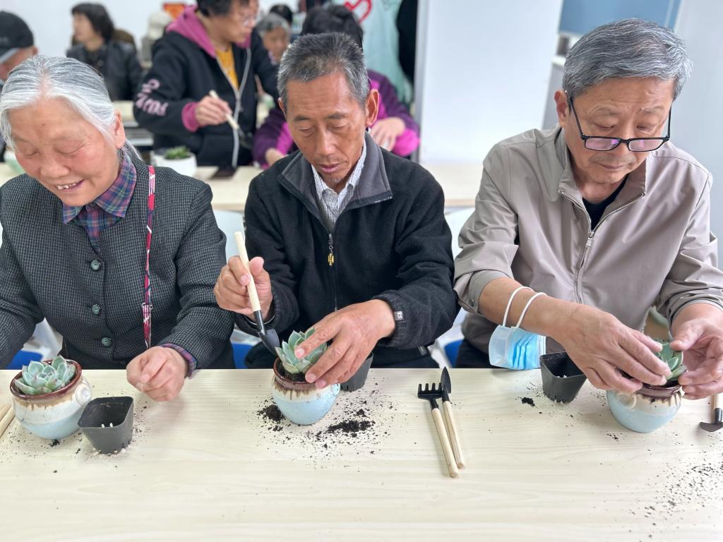 活動現場,蘇農師生首先向社區居民普及了多肉植物的基本知識,介紹了多肉植物的栽培以及養護要點,講解了制作多肉盆栽的方法和順序。在蘇農師生的耐心幫助和參與下,一盆盆多肉盆栽順利完成。看著自己的作品,每個人臉上都露出了滿意的笑容。