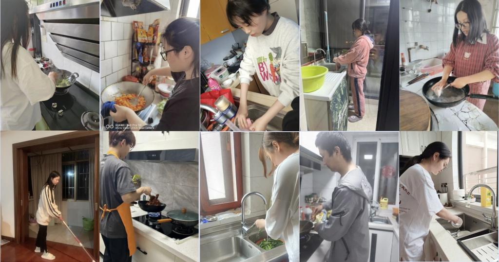 活動期間,不少同學(xué)分享了在家洗衣、做飯、打掃衛(wèi)生、整理家務(wù),還有幫助父母打理生意的情景。一張張照片,流露出同學(xué)們體會勞動的樂趣、體驗(yàn)勞動的辛苦、懂得珍惜父母勞動成果的真情實(shí)感。