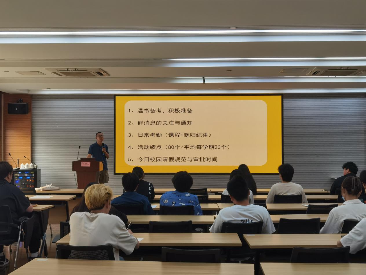 本次例會(huì)的召開要求2022級(jí)班干部高度重視、認(rèn)真謀劃、周密安排,確保學(xué)期末各項(xiàng)工作有序?qū)嵤哉D學(xué)風(fēng)為工作重點(diǎn)、加強(qiáng)班級(jí)紀(jì)律規(guī)范,以飽滿的狀態(tài)迎接期末考試。