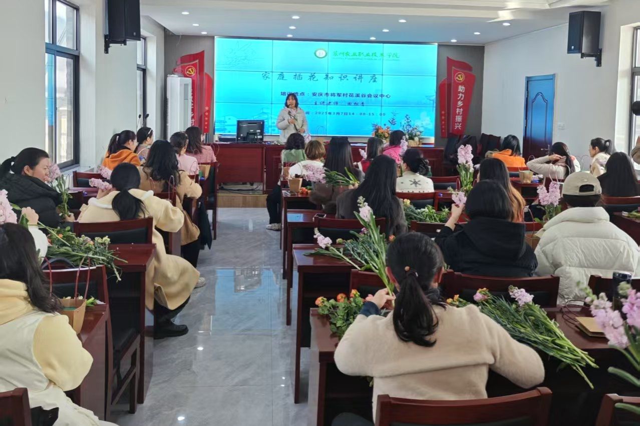 這學期,學院派出田松青老師前往安慶花溪谷進行花卉裝飾、插花、壓花等方面的教學和指導工作,也進一步參與美麗鄉村建設的社會實踐,為今后的教學積累更豐富的經驗。