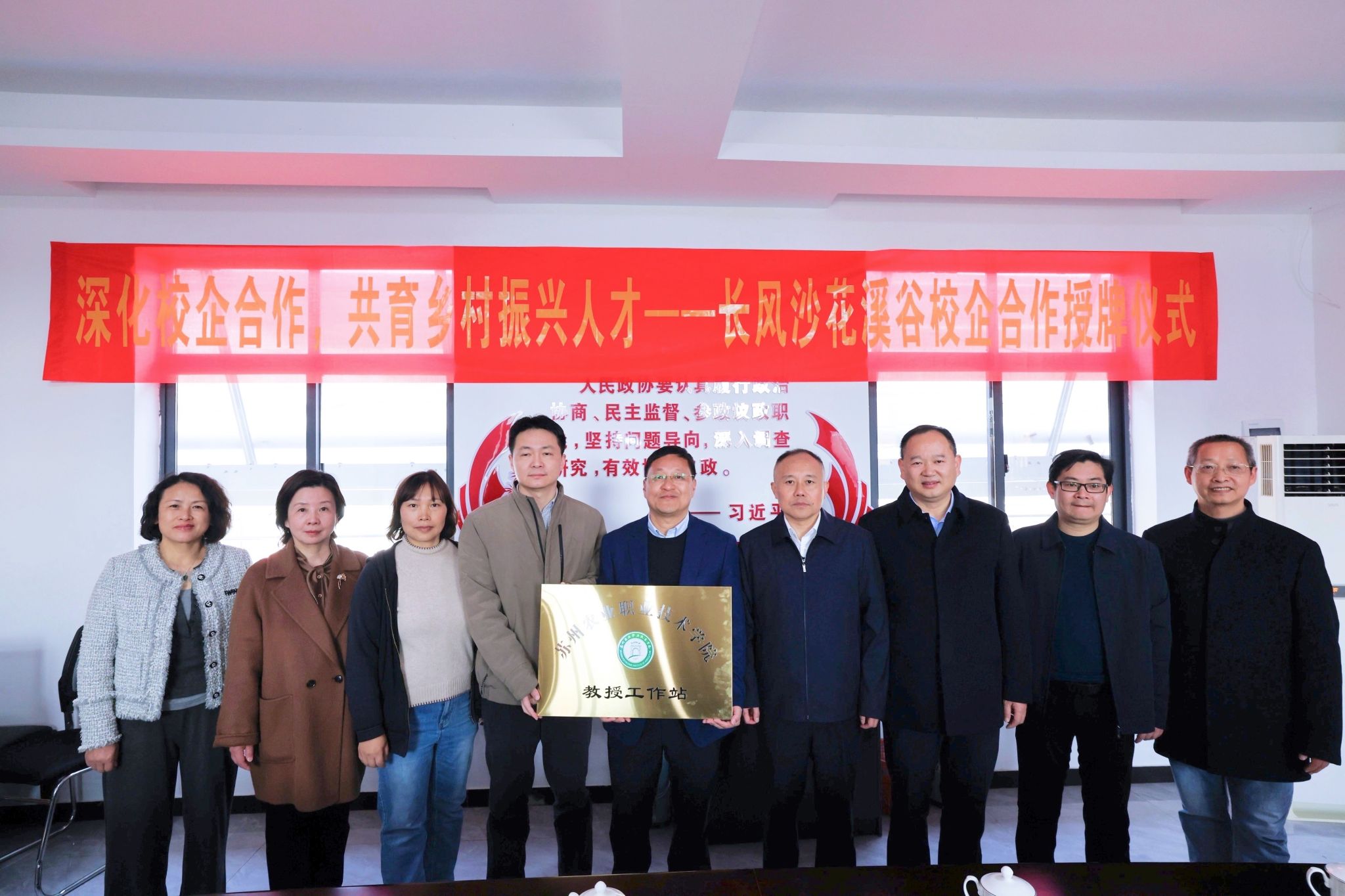 3月20日,農歷春分,園林工程學院副院長鞠鵬杰前往安徽省安慶市迎江區長風鄉將軍村的“長風沙花溪谷”參加了開園儀式并看望學院在安慶花溪谷進行社會實踐的田松青老師,舉行了“蘇州農業職業技術學院教授工作室”授牌儀式。