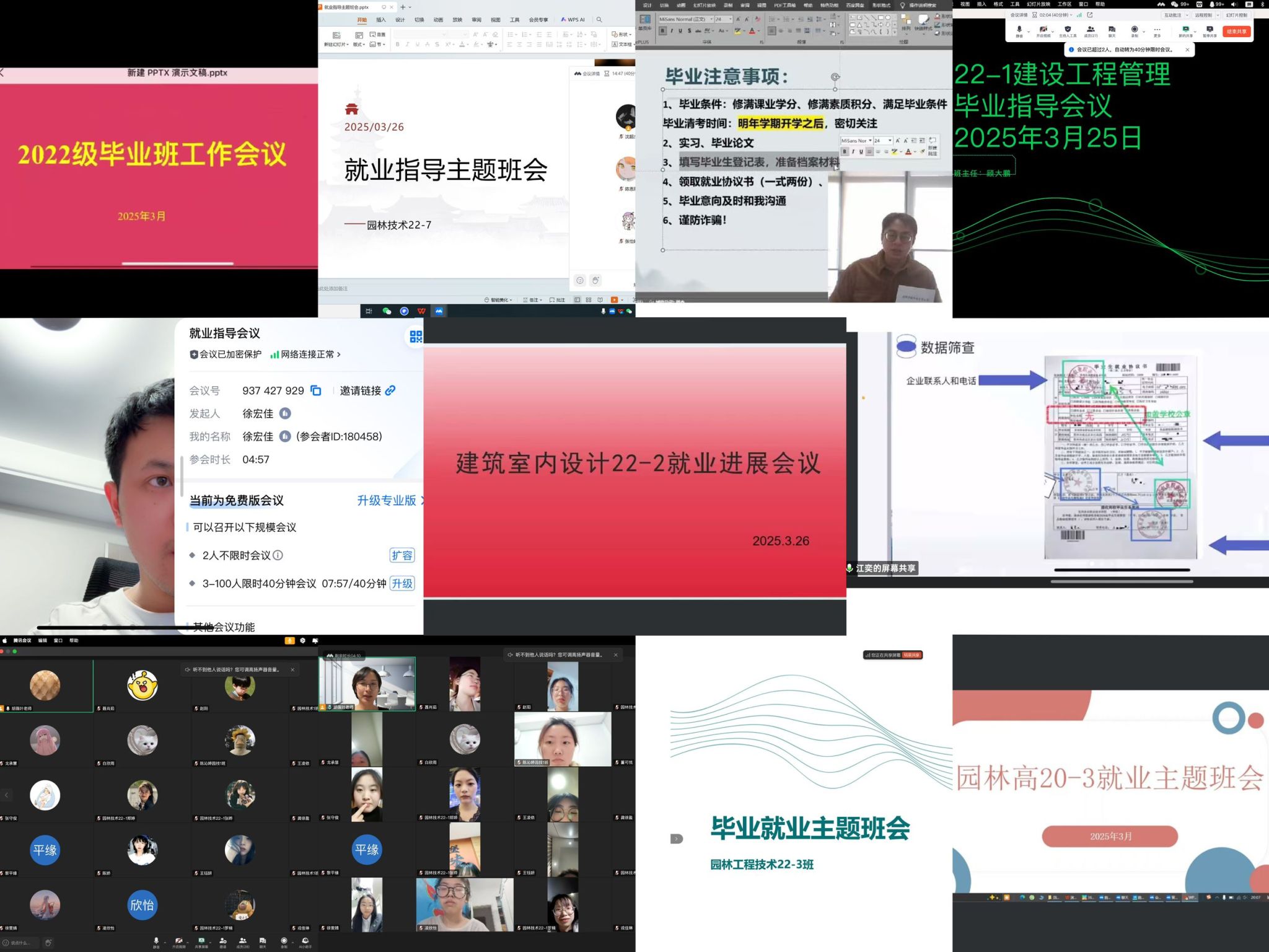 為了切實提升畢業生的就業質量,幫助學生精準把握就業機遇,2025年3月23日至28日,園林工程學院各畢業班班主任開展行動,以線上形式為各自班級舉辦就業主題班會,聚焦春季招聘。