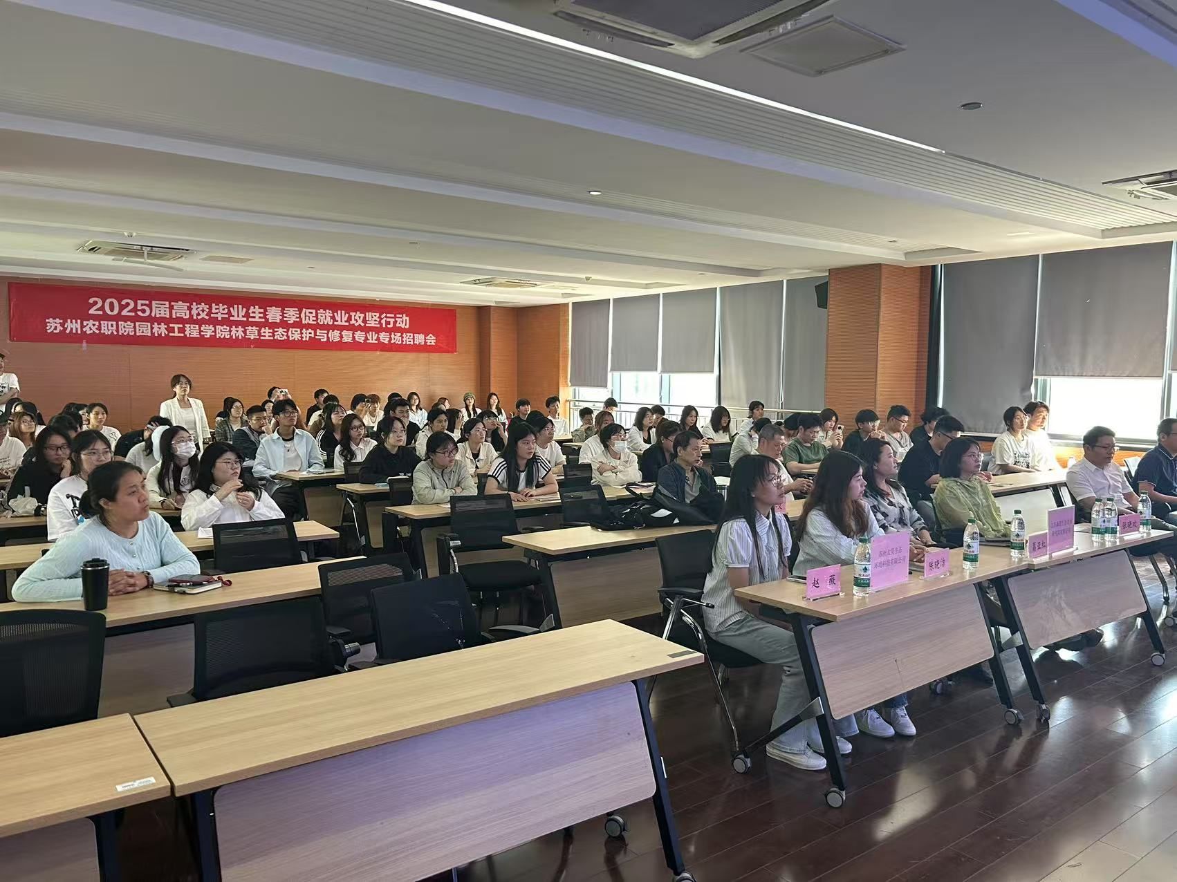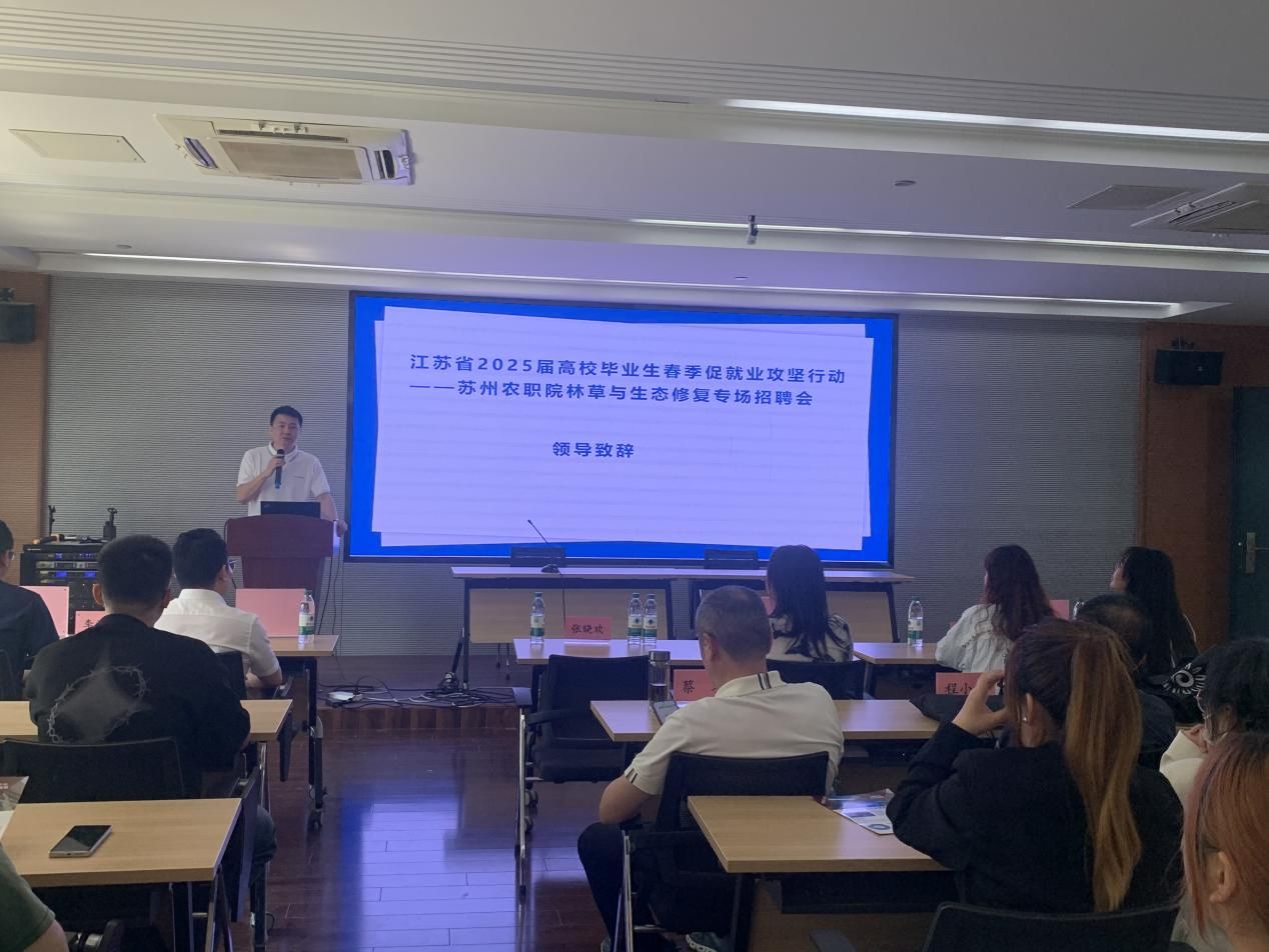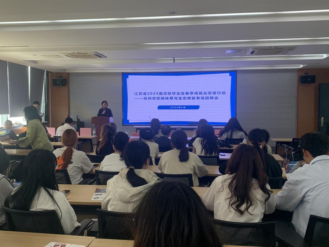 4月29日下午,園林工程學(xué)院林草生態(tài)保護(hù)與修復(fù)教研室在園林技術(shù)館227多功能廳,組織舉辦了“春季促就業(yè)攻堅行動”——林草生態(tài)保護(hù)與修復(fù)專業(yè)專場招聘會。此次招聘活動特邀江蘇森茗生態(tài)景觀研究院有限公司以及蘇州太昊生態(tài)環(huán)境科技有限公司宣講,由教研室主任武金翠主持,學(xué)院副院長鞠鵬杰、林草教研室相關(guān)教師以及學(xué)院林草生態(tài)保護(hù)與修復(fù)、園林工程技術(shù)和園林技術(shù)等3個專業(yè)的學(xué)生參加了本次招聘會。