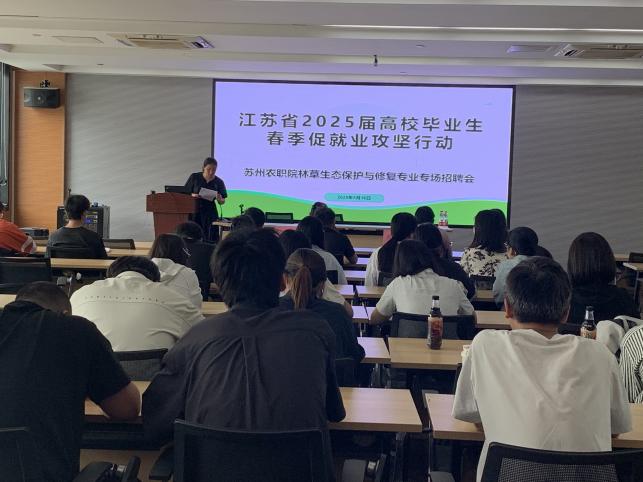5月16日下午,園林工程學院林草生態保護與修復教研室在園林技術館227多功能廳,組織舉辦了第三場“春季促就業攻堅行動”——林草生態保護與修復專業專場招聘會。此次招聘會邀請全國園林綠化行業產教融合共同體單位,蘇州蘇水環境監測服務有限公司來校宣講,會議由專業負責人王瑩主持,學院就業專員江奕、林草生態保護與修復專業專任教師和學生、園林技術、園林工程技術專業學生參加了本次會議。