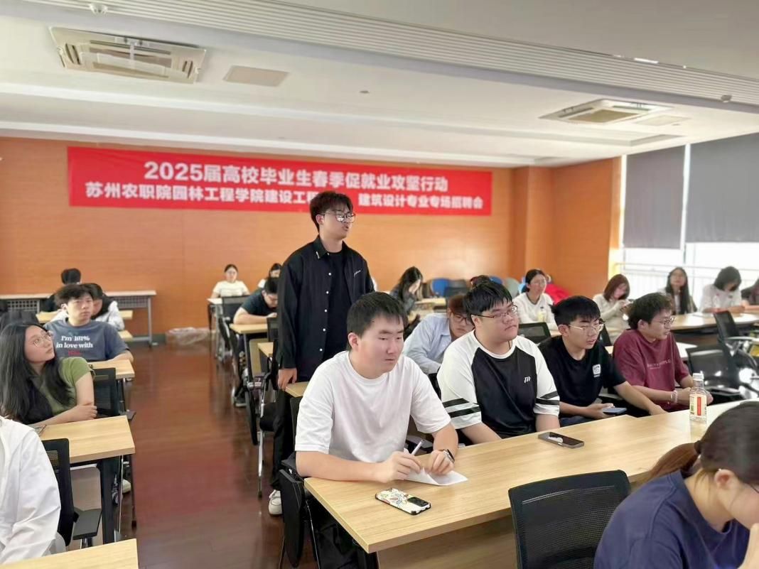 2025年5月27日中午,園林工程學院建筑營造與管理教研室在園林技術館227教室成功舉辦了建設工程管理專業、建筑設計專業專場招聘會。招聘會由建筑營造與管理教研室主任張彤鈺老師主持,教研室全體教師,全國園林綠化產教融合共同體單位蘇州善智釷沐工程管理咨詢有限公司,2025屆建設工程管理專業、建筑設計專業學生參與了此次招聘會。