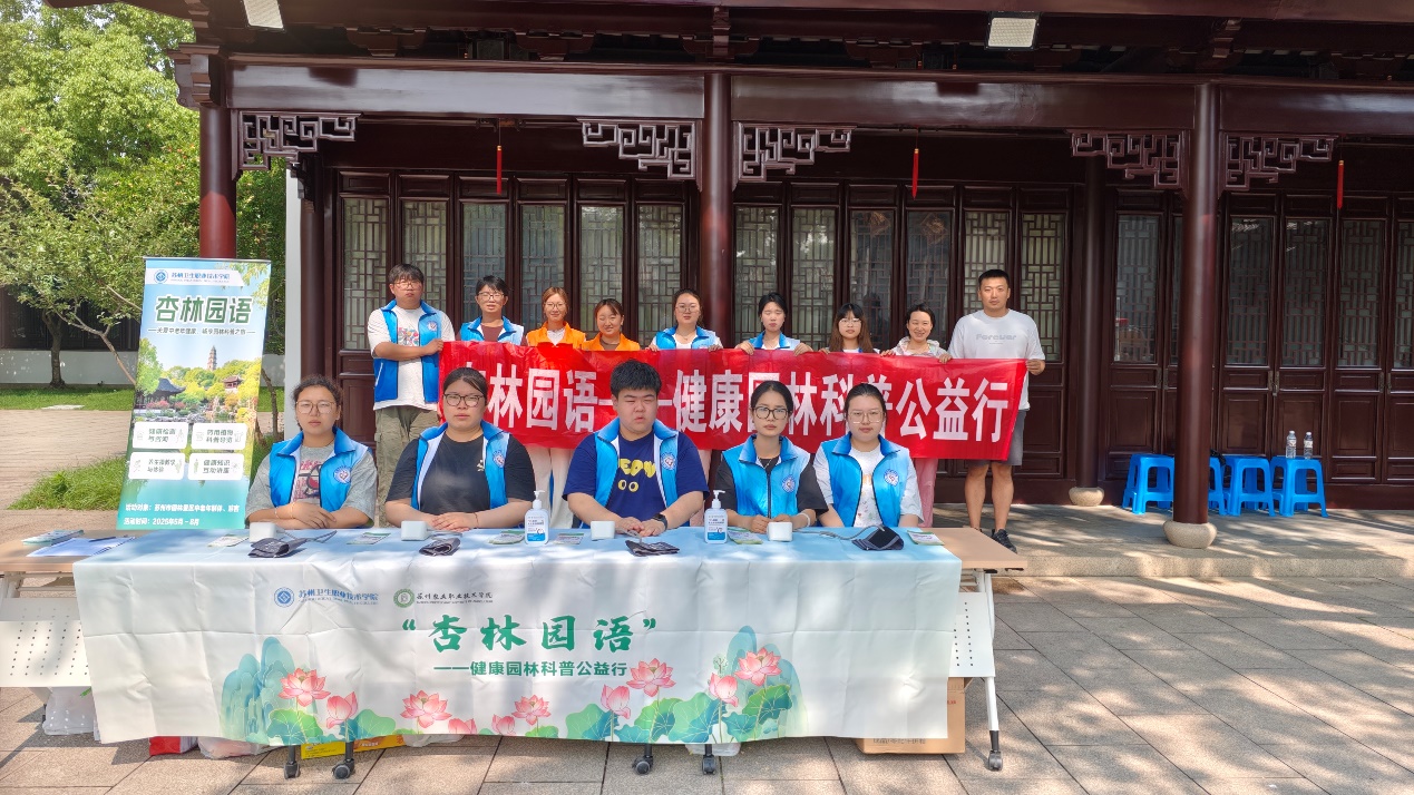 2025年5月25日蘇州農業職業技術學院園林工程學院與蘇州衛生學院護理學院聯合在5A級景區虎丘山風景名勝區開展“杏林園語健康園林科普公益行”主題志愿服務實踐活動。活動以“醫學+農學”跨學科協作為特色,10名護理專業與2名園林專業志愿者共同搭建“健康服務驛站”,探索文旅場景下的健康服務模式。