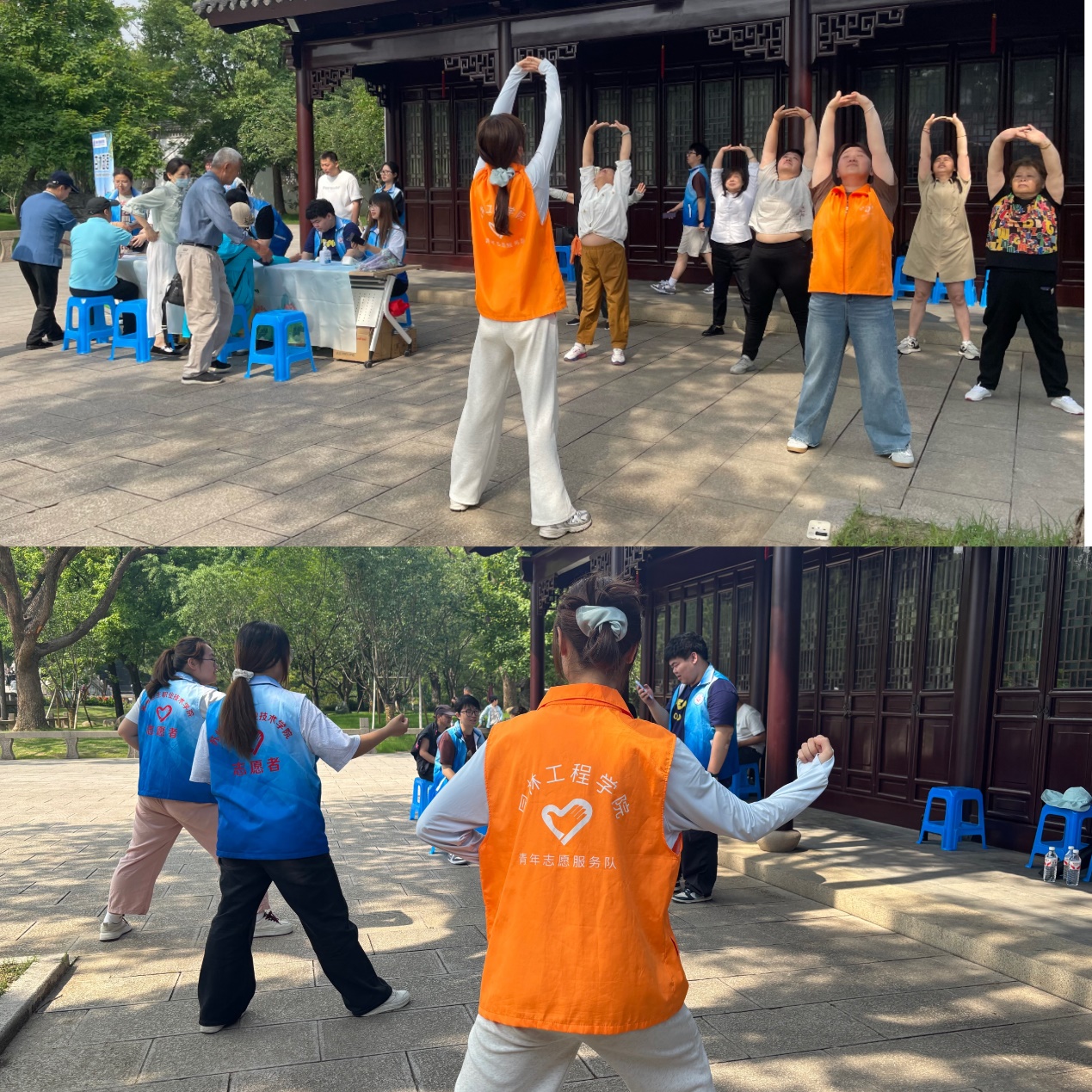 活動當天,園林工程學院與護理學院的師生志愿者們齊聚校園,通過設立健康園林知識展板、開展免費測血壓、飲食健康保健指導、八段錦教學等形式向游客提供專業健康服務,更打造出兼具文化傳承與生態療愈特色的健康科普新場景。