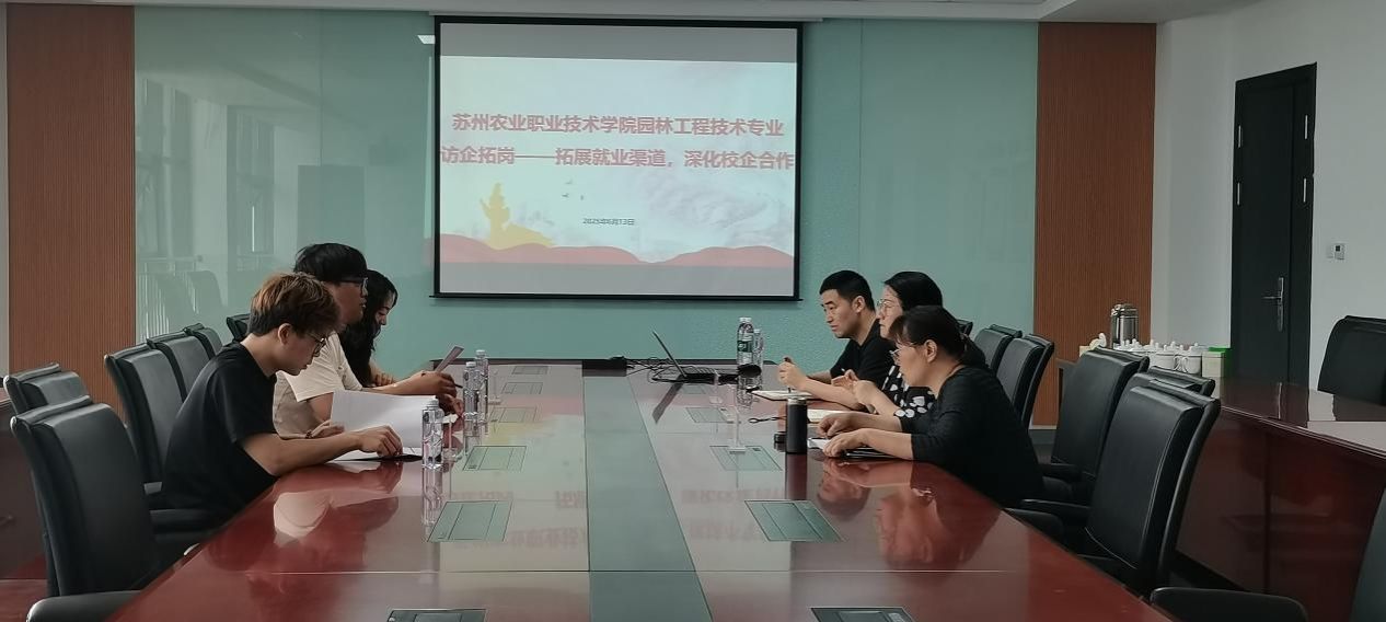 為深化校企合作,拓寬畢業生就業渠道,并精準對接企業用人需求,2025年6月13日下午,園林工程技術教研室在園林技術館217會議室成功舉辦了訪企拓崗專項行動交流會。此次活動邀請了蘇州恒睦景成園林景觀綠化有限公司到校交流,公司總經理錢奎龍帶領骨干成員馬禛彥、熊新豪等出席。園林工程技術專業負責人戴群、教研室主任楊洋以及專任骨干教師田松青、馬振宇、顧大鵬等共同參加了此次交流會。