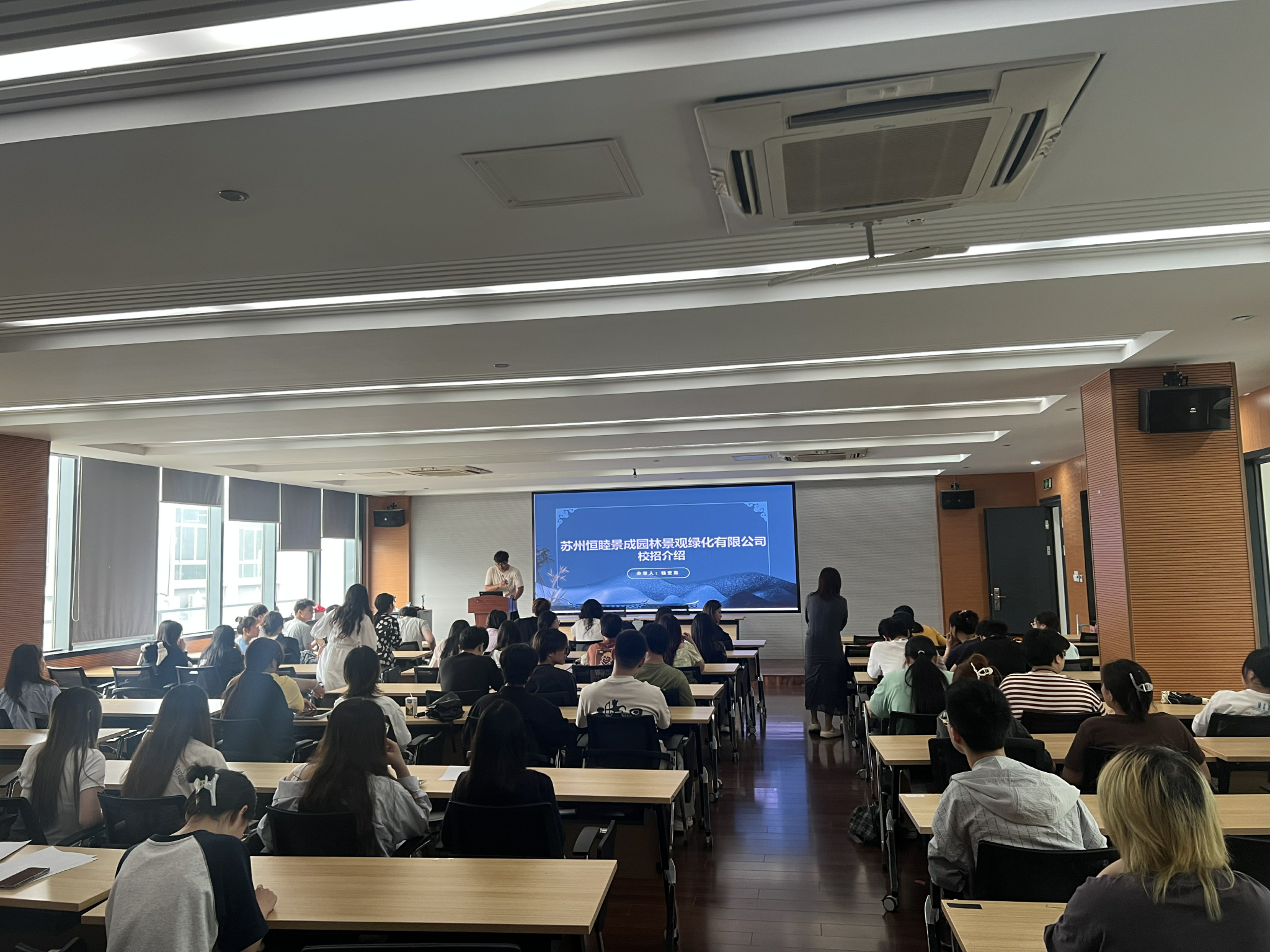為深入貫徹落實教育部關(guān)于做好2025屆高校畢業(yè)生就業(yè)創(chuàng)業(yè)工作的相關(guān)要求,為用人單位和畢業(yè)生搭建高效、精準(zhǔn)的雙向選擇平臺,全力促進2025屆畢業(yè)生順利畢業(yè)、盡早就業(yè)。園林工程學(xué)院園林工程技術(shù)教研室于2025年6月13日在園林技術(shù)館227多功能廳召開2025屆高校畢業(yè)生春季促就業(yè)專場招聘會。此次招聘會邀請?zhí)K州恒睦景成園林景觀綠化有限公司來校宣講,會議由園林工程技術(shù)專業(yè)負責(zé)人戴群主持,園林工程學(xué)院副院長鞠鵬杰,園林工程技術(shù)教研室主任楊洋、專業(yè)骨干教師及園林工程技術(shù)專業(yè)25屆畢業(yè)生、23級在校生共同參加此次會議。