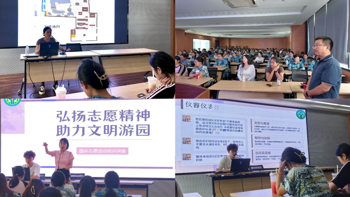 為保障國慶期間志愿服務安全、有序進行,2025年9月25日,園林工程學院青年志愿者協會在園林技術館227開展了以“弘揚志愿精神,助力文明游園”為主題的志愿者專題培訓。獅子林管理處黨政辦顧蕓、園林工程學院黨總支副書記徐崢、園林工程學院青協指導教師劉歡及150余名志愿者代表共同參與。本次培訓旨在提升志愿者綜合服務能力,助力景區假期秩序管理與文化傳播。