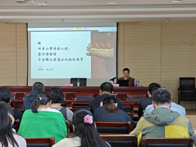 簽約儀式后,姚嵐教授為企業(yè)員工作了題為“植物與芳香療法”的專題講座,從植物特性與園林景觀的療愈功能角度,生動(dòng)闡釋了生態(tài)建設(shè)與健康生活的內(nèi)在聯(lián)系。隨后,蘇州香山古建園林代表性傳承人孫小青大師以“片石假山營(yíng)造山水畫的故事”為主題,結(jié)合香山幫傳統(tǒng)營(yíng)造技藝,深入淺出地講解了假山藝術(shù)中的山水意境與文化內(nèi)涵。