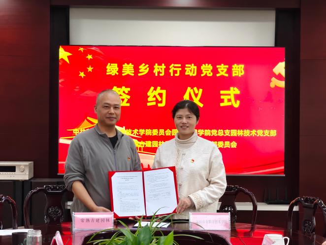 2025年10月29日,蘇州農(nóng)業(yè)職業(yè)技術(shù)學(xué)院園林工程學(xué)院與常熟古建園林股份有限公司成功簽署黨建合作協(xié)議,共同組建“綠美鄉(xiāng)村行動(dòng)黨支部”。此次合作標(biāo)志著校企雙方在“黨建+專業(yè)”融合模式上邁出創(chuàng)新一步,為鄉(xiāng)村振興注入新動(dòng)能。蘇州農(nóng)業(yè)職業(yè)技術(shù)學(xué)院園林技術(shù)黨支部書記姚嵐教授、學(xué)生黨支部書記謝君娜老師以及林草生態(tài)保護(hù)與修復(fù)技術(shù)專業(yè)負(fù)責(zé)人王瑩副教授,與常熟古建園林股份有限公司黨支部書記馮友新及支委成員共同開展了本次簽約儀式。