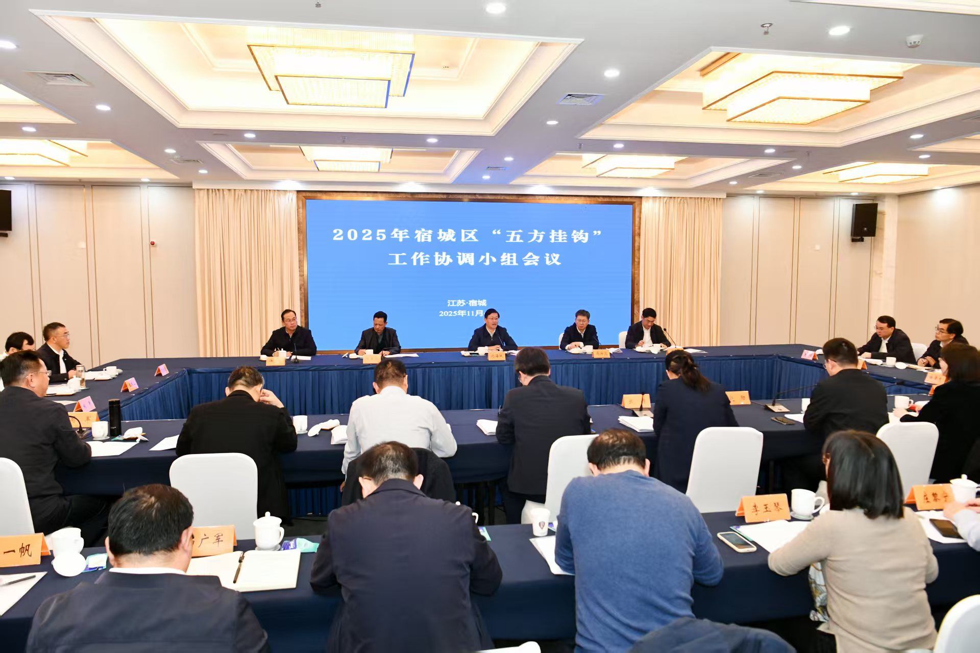 11月4日,2025年宿城區(qū)“五方掛鉤”工作協(xié)調(diào)小組會(huì)議在宿遷市宿城區(qū)召開。省市場監(jiān)管局黨組書記、局長沈海斌出席會(huì)議并講話。省市場監(jiān)管局二級巡視員馮興漢主持會(huì)議。省農(nóng)業(yè)農(nóng)村廳、省市場監(jiān)管局有關(guān)處室負(fù)責(zé)同志,宿城區(qū)“五方掛鉤”工作協(xié)調(diào)小組成員單位負(fù)責(zé)同志和聯(lián)絡(luò)員,工作隊(duì)全體隊(duì)員,宿遷市、宿城區(qū)委區(qū)政府和有關(guān)部門負(fù)責(zé)同志參加會(huì)議。蘇州農(nóng)業(yè)職業(yè)技術(shù)學(xué)院黨委委員、副校長周軍、園林工程學(xué)院副院長黃順(主持工作)代表學(xué)校參會(huì)。