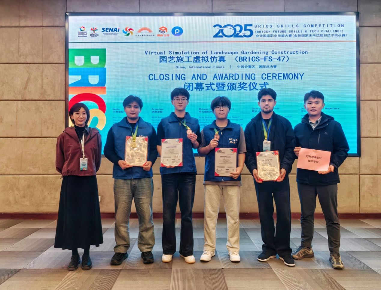 此次獲獎不僅是對園林類專業人才培養模式和教學質量的高度認可,更彰顯了學校在推進國際化辦學、培養具備國際競爭力的高技能人才方面的突出成果。未來,學校將繼續以金磚國家職業技能大賽為契機,深化產教融合、校企合作,持續提升專業建設水平與國際化育人質量,為金磚國家及“一帶一路”沿線國家職業教育發展貢獻更多“蘇農力量”。