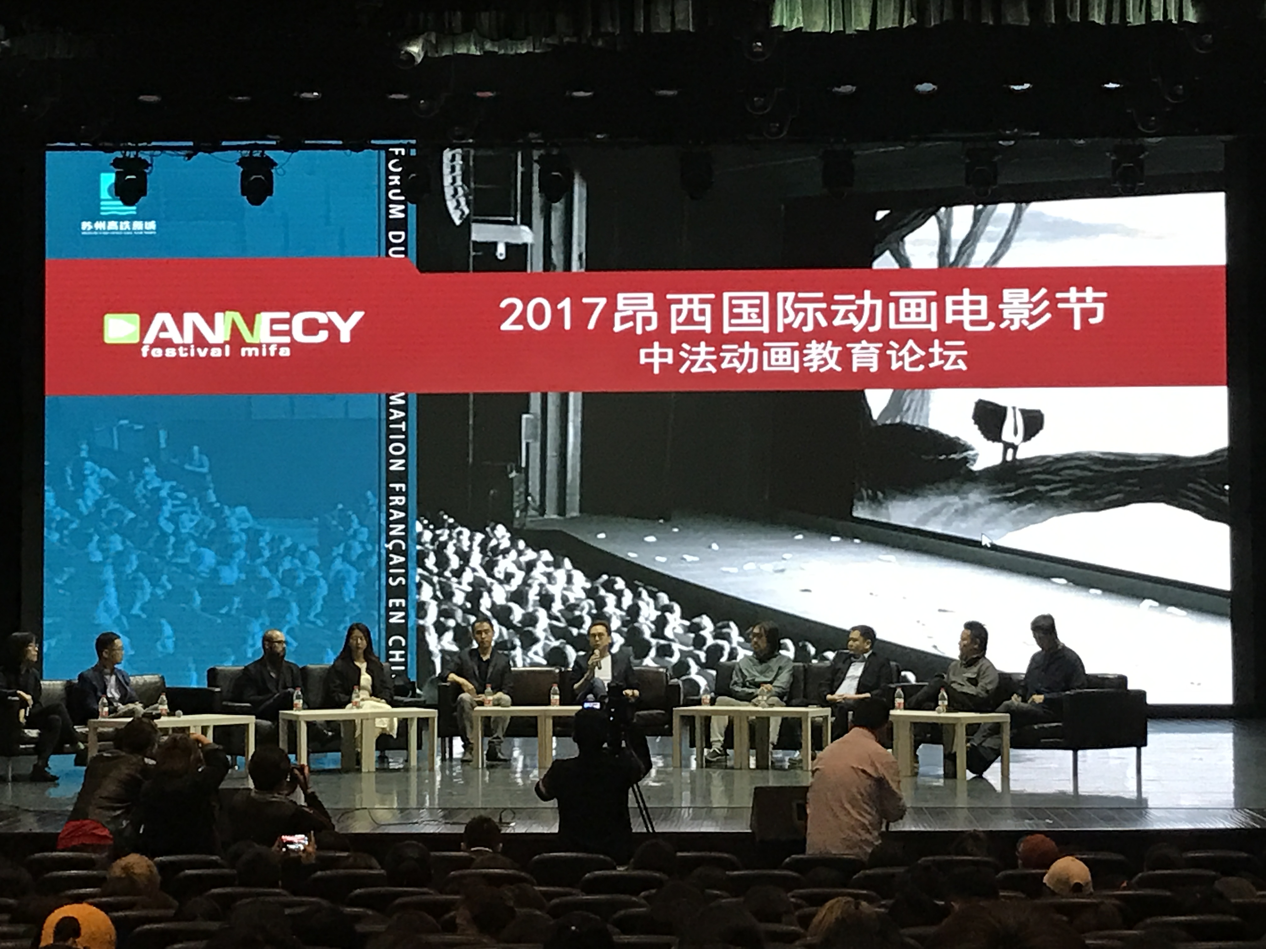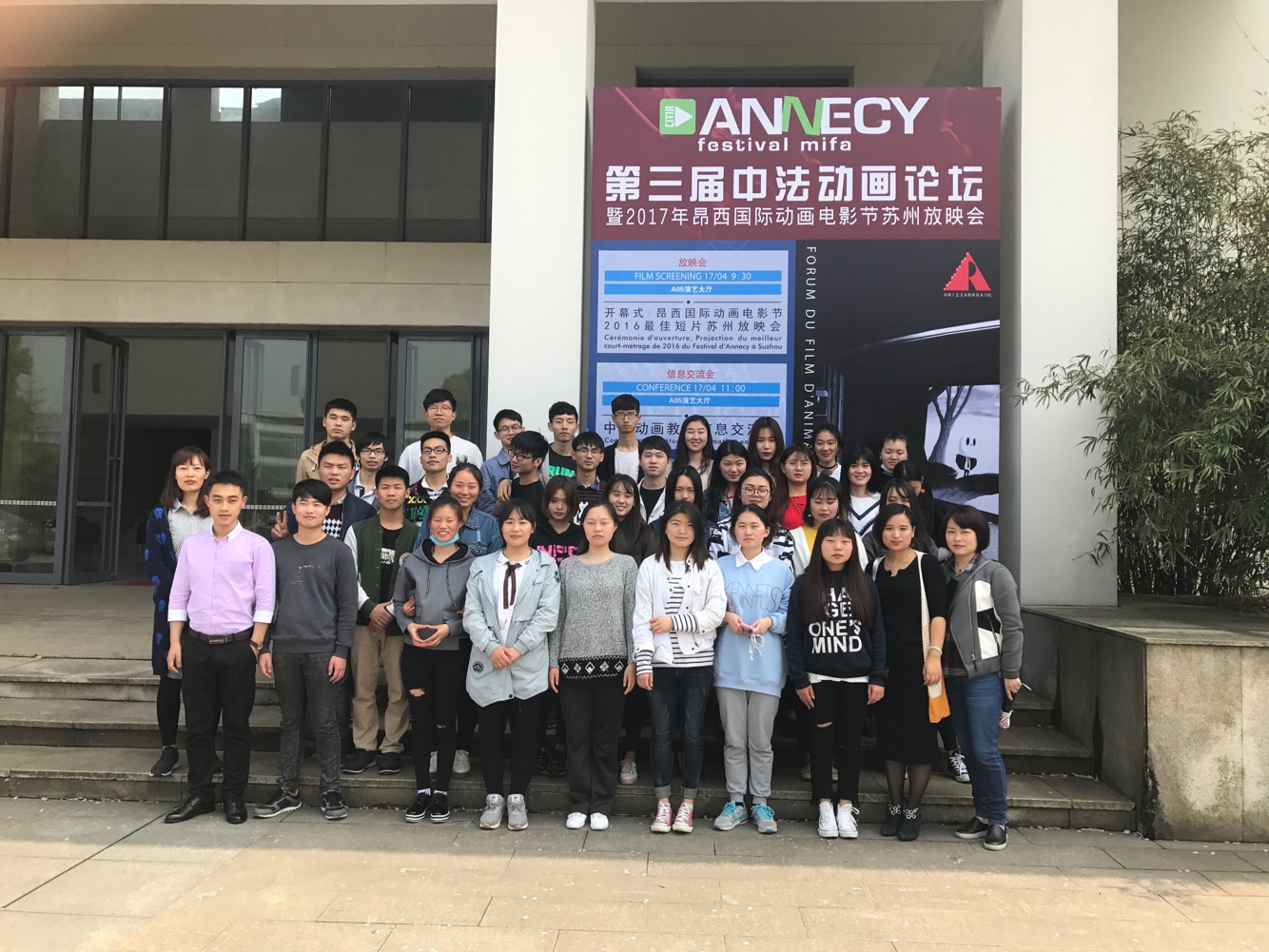4月17日,園林工程學院數字媒體專業的曹彥婷、許靜、唐麗麗老師帶領數字媒體設計與制作專業學生,赴蘇州工藝美院參加第三屆中法動畫論壇暨2017年昂西國際動畫電影節蘇州放映會。