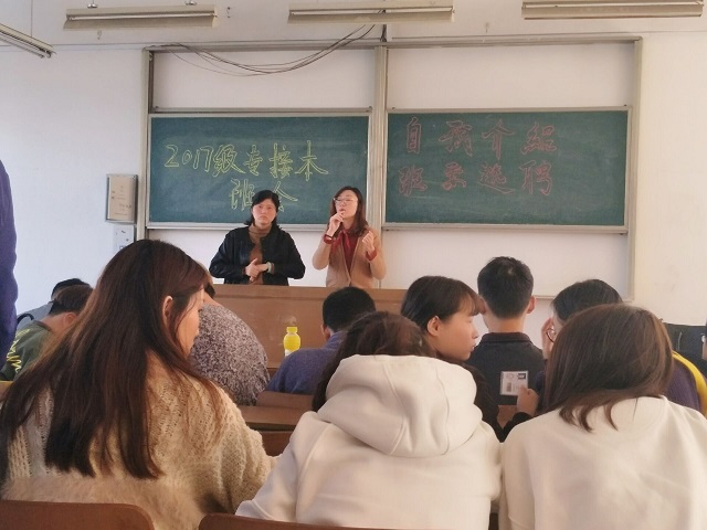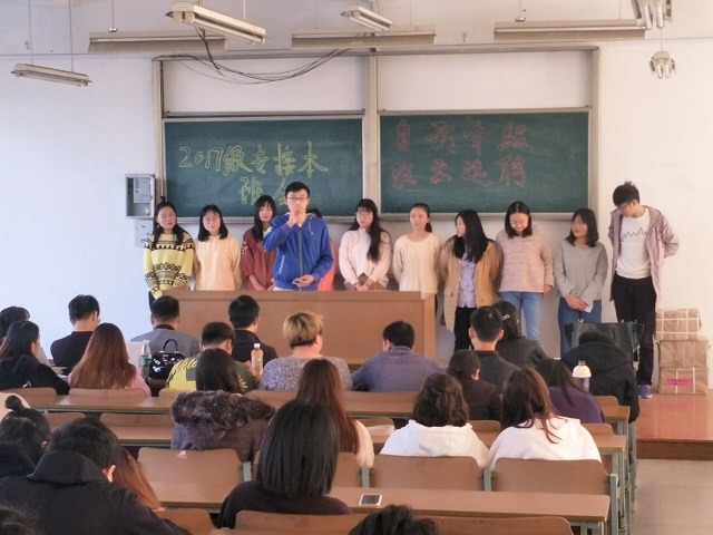 班委選聘環節結束后由教務秘書孫瑜老師組織兩個班級同學以原班級為單位依次上臺進行自我介紹,希望以此增進專接本新生們對彼此的熟識度。
