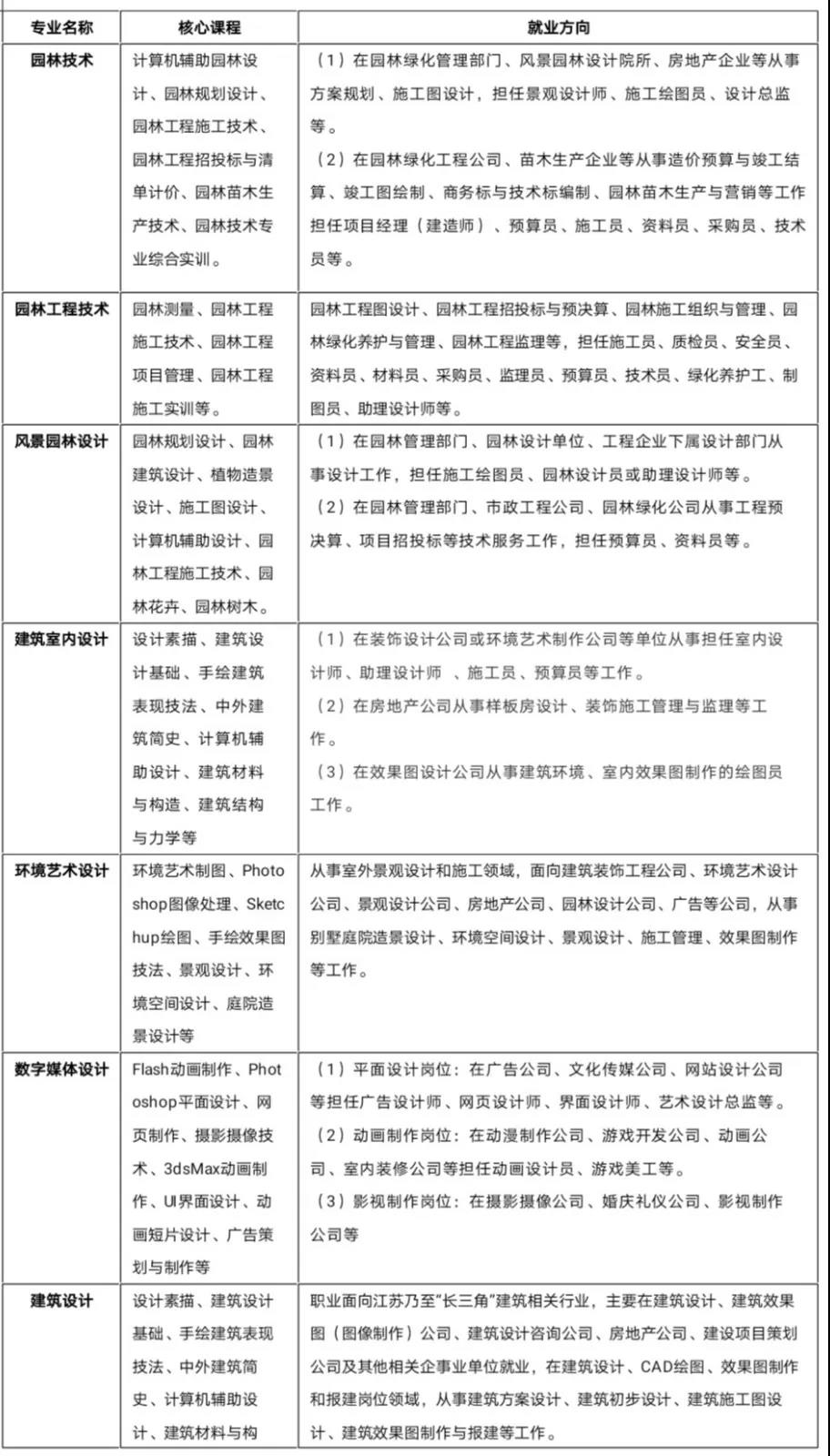 園林工程學院專業設置一覽表