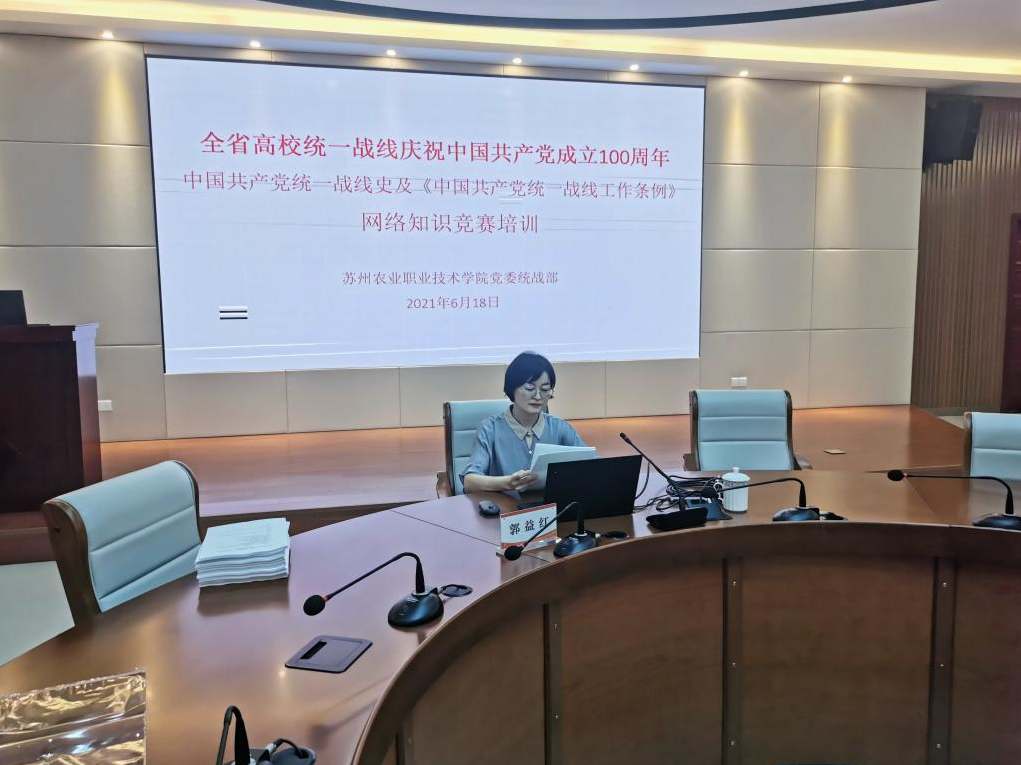 6月18日下午,學(xué)院黨委統(tǒng)戰(zhàn)部委派組織人事處副處長郭益紅同志在國際交流中心就全省高校統(tǒng)一戰(zhàn)線中國共產(chǎn)黨統(tǒng)一戰(zhàn)線史及《中國共產(chǎn)黨統(tǒng)一戰(zhàn)線工作條例》網(wǎng)絡(luò)知識競賽開展培訓(xùn),學(xué)院各基層黨組織書記及統(tǒng)戰(zhàn)委員、學(xué)生代表等統(tǒng)一戰(zhàn)線成員參加培訓(xùn)。
