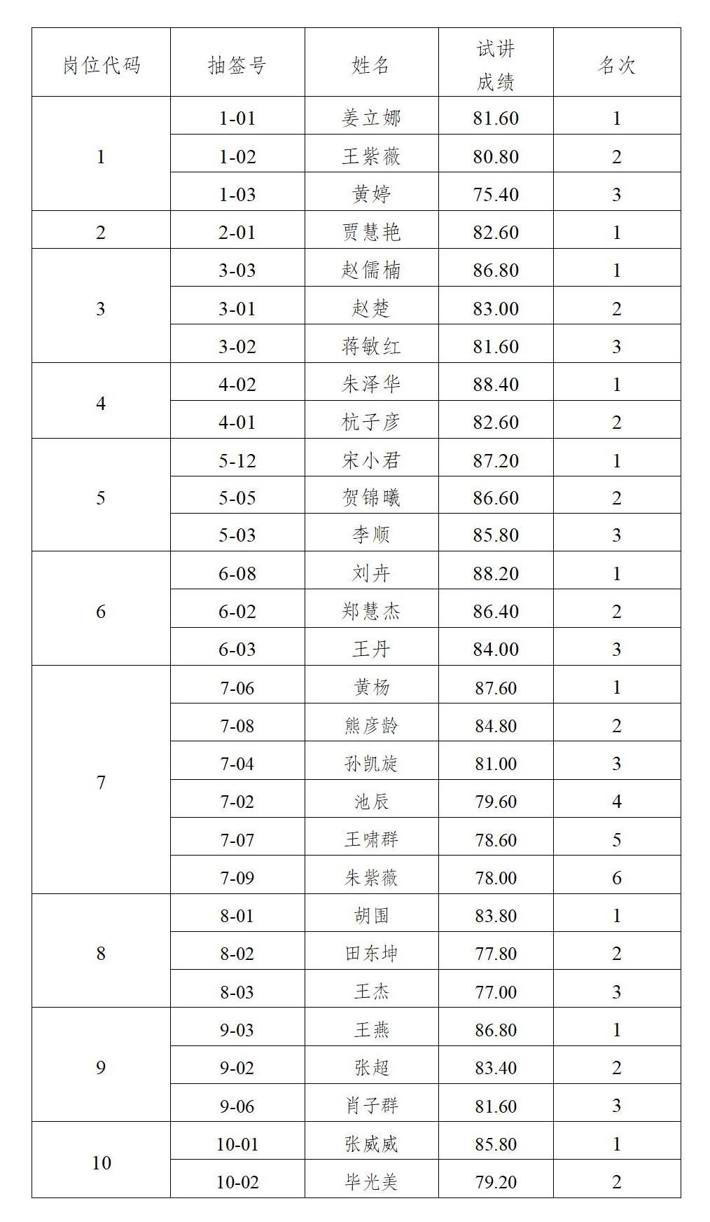 根據(jù)蘇州農(nóng)業(yè)職業(yè)技術(shù)學(xué)院2025年公開招聘工作人員公告(第一批)的要求,我校于2025年6月7日組織了1-10號崗位試講工作,在成績合格者中,按照試講成績從高分到低分的順序,在各招聘崗位擬招聘人數(shù)1∶3比例范圍內(nèi),確定參加面試人員,不足該比例的按合格線以上的實際人數(shù)確定,現(xiàn)予公布。請參加面試人員于6月8日(周日)上午8:15到達學(xué)院行政樓805會議室集合。