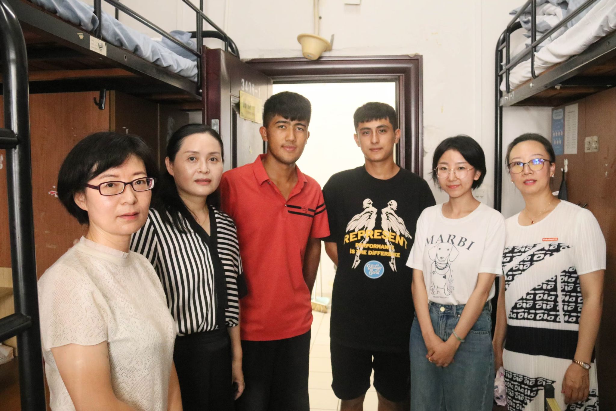 走訪過程中,李凌云處長親切問候新生的入住情況,與學生深入交流,提醒新生到新的城市,要注意安全,快速適應新環境。老師們為不便上下樓的一位新生專門安排了一樓單間宿舍,并叮囑學生有困難要主動聯系學院尋求幫助,希望該生能有一個充實愉快的大學生活。新生家長表示,第一天來報到,看到這樣的環境,非常激動,特別感謝學校的暖心安排。徐建靈書記親切詢問來自新疆的同學,提醒漢族同學要了解少數民族風俗習慣,互相尊重,維族和漢族同學要互相幫助,共同成長。資助專員和班主任也表示會隨時關注新生的入學狀態,將經常深入學生宿舍,做好學生日常管理工作,對于有困難的學生會及時給與幫助,為新生在校的學習和生活提供良好支持。