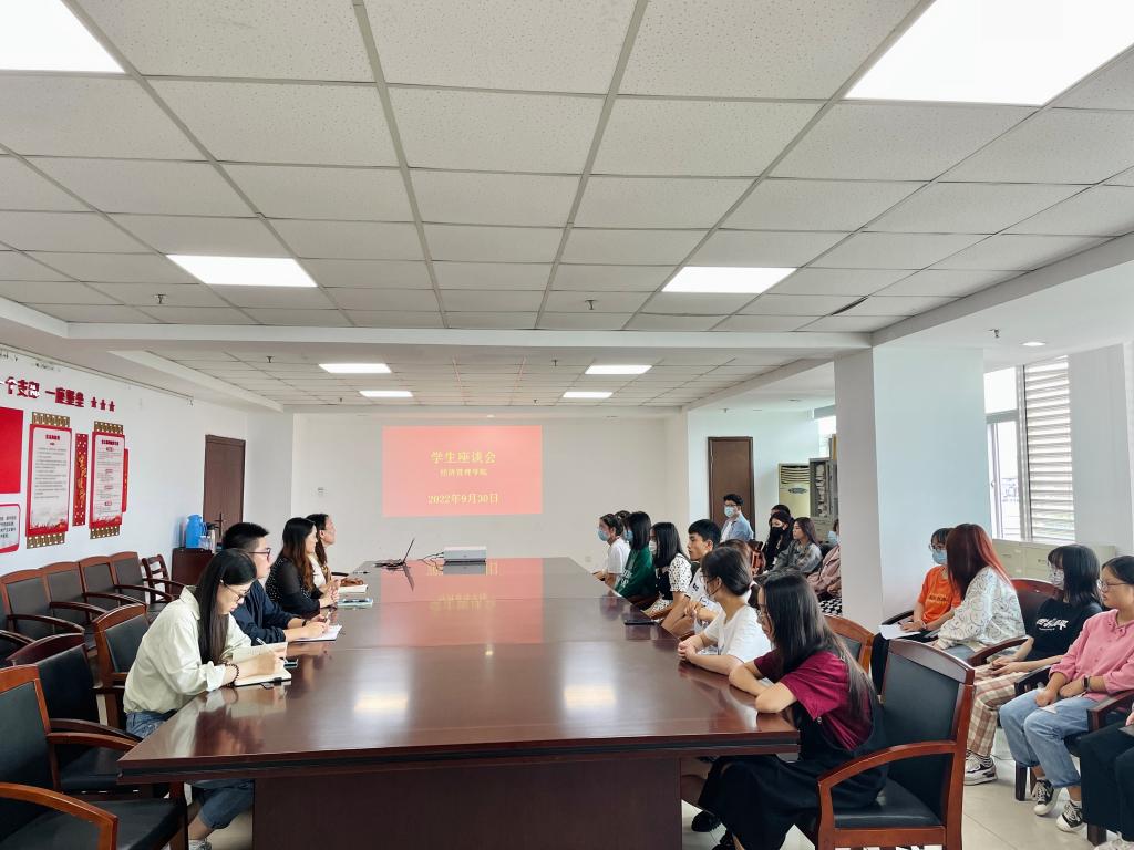 為進一步宣傳落實國家有關資助政策的精神要求,傳達對少數民族的關心,解決困難學生“急愁難盼”身邊事,激勵他們奮發自強、努力成才,不斷提升資助育人工作的精準度和有效力,9月30日中午,經濟管理學院在行政樓606會議室召開2022年秋季學期學生工作座談會。黨總支書記徐建靈,資助專員曾麗,年級輔導員劉瑩、湯昕,以及受助校內學生代表、少數民族學生代表共計30人參加座談會。會議由資助專員曾麗主持。