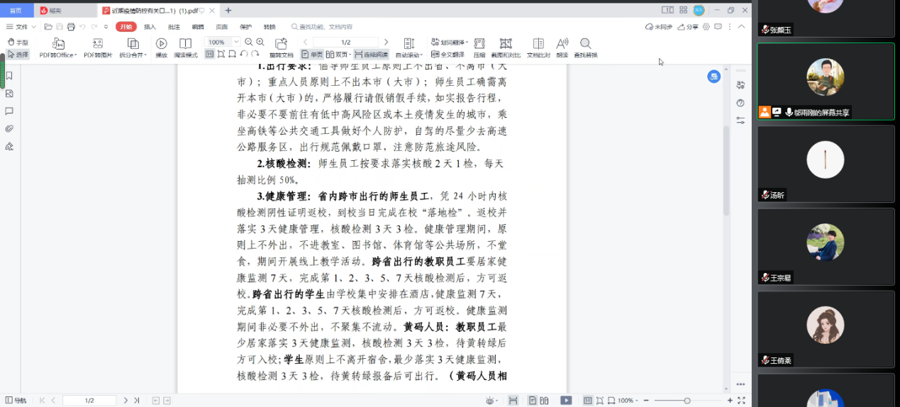 會上,鄔雨剛強調,當前國內疫情多點散發,所有班主任、輔導員要提高思想覺悟,關注每一位同學,強化學生疫情防控教育引導。要求“管好每一個人,把好每一道關”,嚴格貫徹學校疫情防控精神。鄔雨剛在“摸排健康碼”“依據行程碼落實健康監測”“排查核酸檢測”“特別情況學生名單上報”等方面做出具體要求。要求班主任召開一次主題班會,嚴格落實學生請假制度(備案制和審批制)和健康管理措施,提醒學生非必要不出市、原則上不出省,不去疫情所在設區市,做好學生思想政治工作,關注輿情動態。