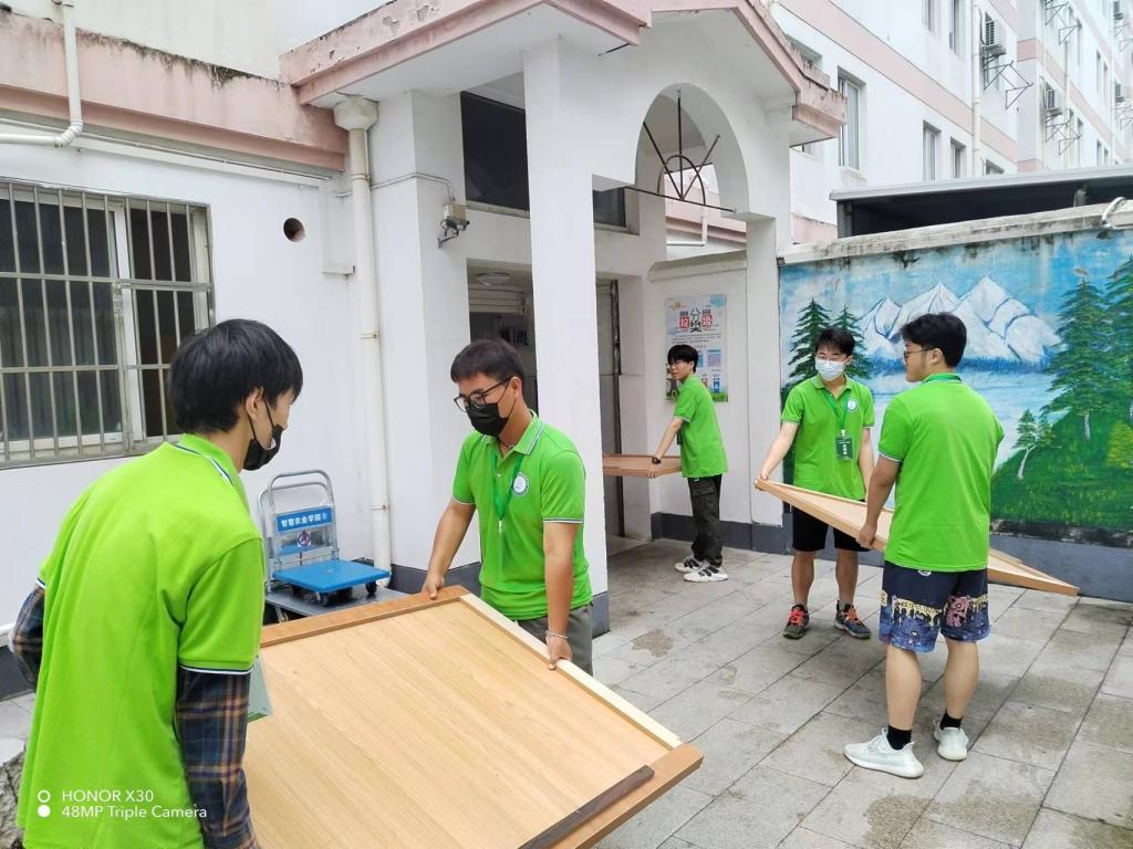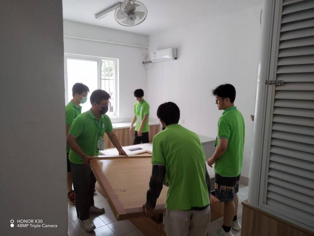 經(jīng)濟(jì)管理學(xué)院2022級(jí)一名新生因身體原因,不適合爬樓梯和上下床鋪。班主任、輔導(dǎo)員了解情況后,立即跟學(xué)院黨總支書記反映,黨總支第一時(shí)間向?qū)W工處宿管中心反映情況,希望能提供一個(gè)一樓房間的下鋪床位。學(xué)工處、后勤基建處和物業(yè)管理公司經(jīng)過摸排、商議,最后發(fā)現(xiàn)B2宿舍樓一樓有一間大客廳,可以砌一堵墻改造成一個(gè)單間宿舍。隨即,后勤基建處處長親自布置,安排工人丈量、施工,調(diào)配了單人床、衣柜和書桌等。