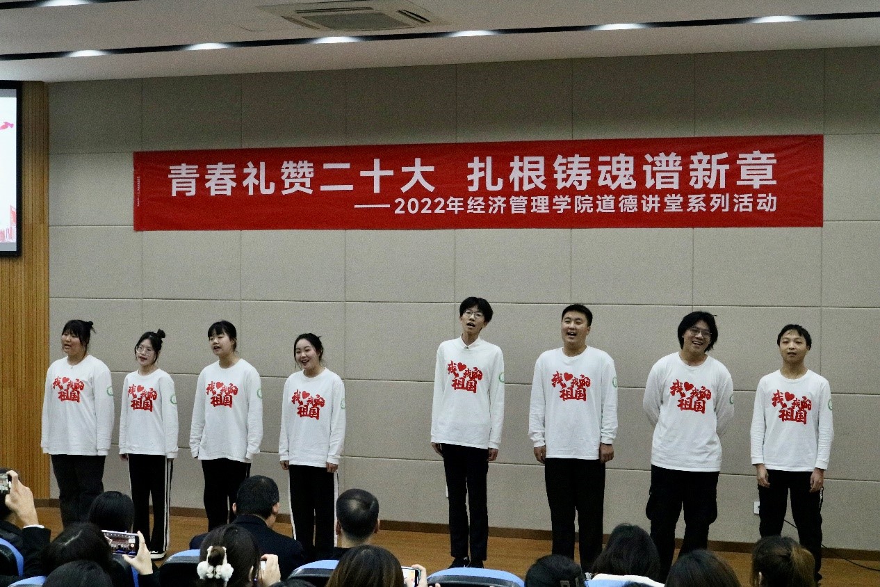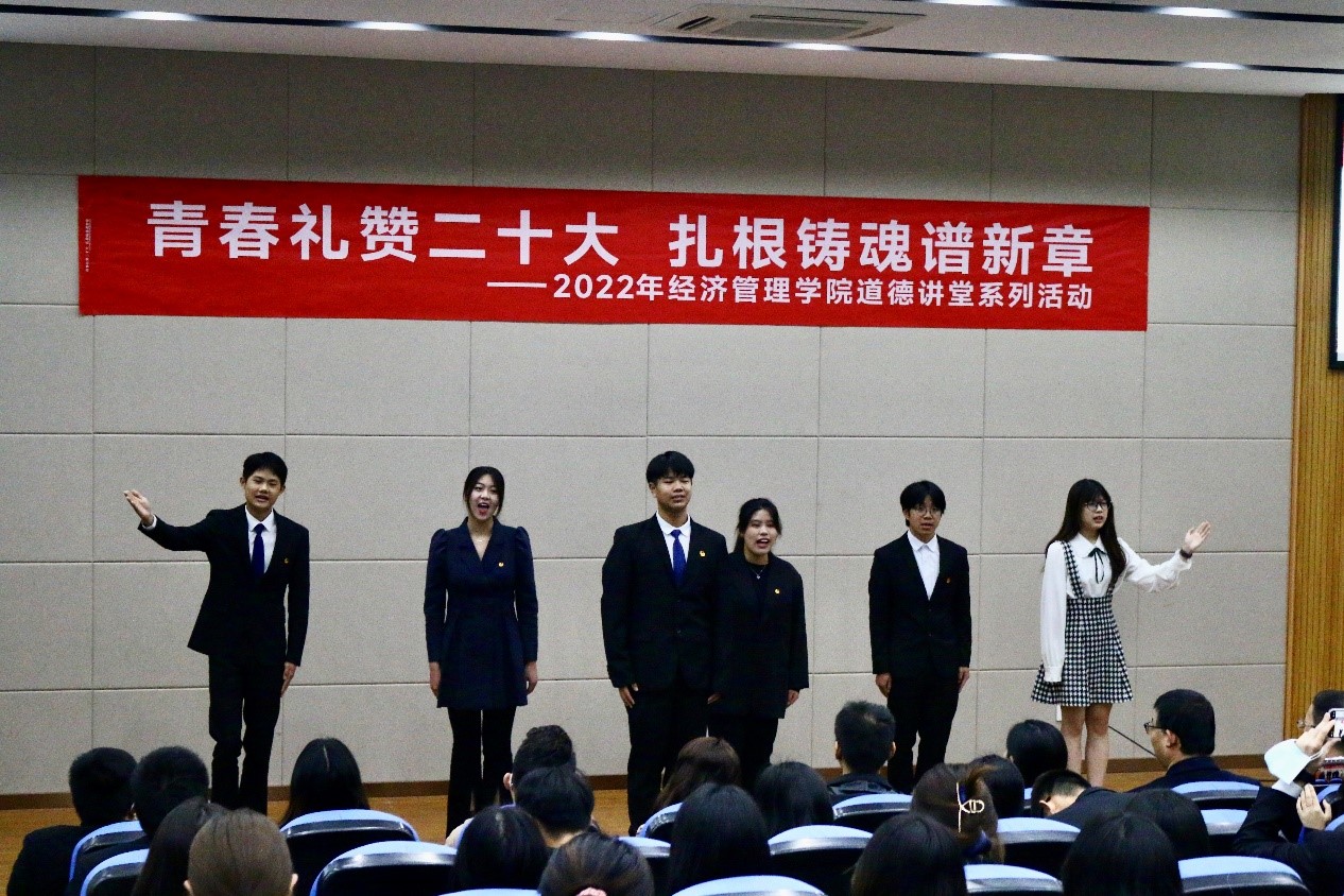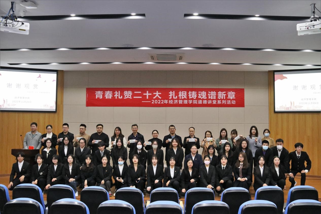 為深入學(xué)習(xí)宣傳黨的二十大精神,自覺(jué)用習(xí)近平新時(shí)代中國(guó)特色社會(huì)主義思想武裝頭腦,11月27日,經(jīng)濟(jì)管理學(xué)院在和豐樓三樓報(bào)告廳舉辦了“青春禮贊二十大,扎根鑄魂譜新章”道德講堂系列活動(dòng)。