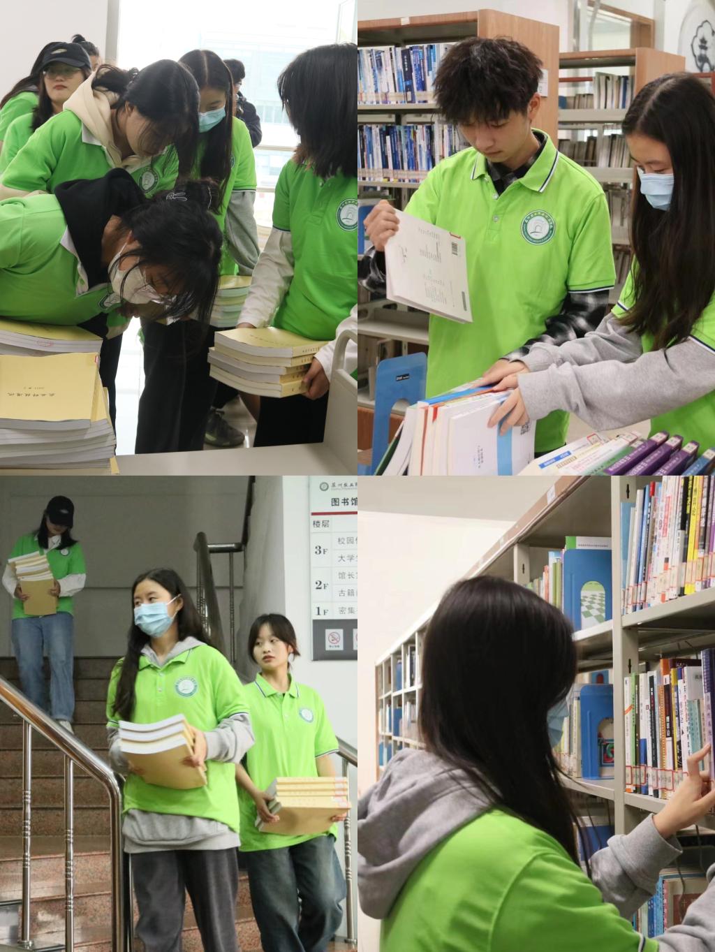 活動(dòng)期間,志愿者們?cè)趫D書(shū)館工作人員和老師的指引下,協(xié)助書(shū)籍的整理、擺放,同時(shí)配合圖書(shū)管理員的相關(guān)日常工作。在減輕圖書(shū)管理員負(fù)擔(dān)的同時(shí),也給廣大學(xué)子提供更加舒適的借書(shū)體驗(yàn)。