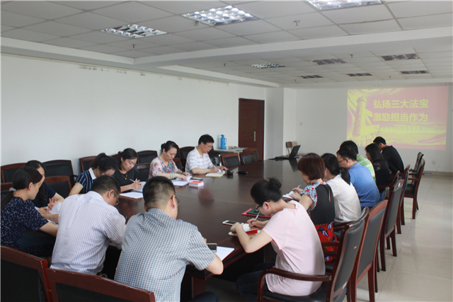 為深入學(xué)習(xí)宣傳貫徹黨的十九大精神、習(xí)近平總書記在北京大學(xué)師生座談會和紀(jì)念馬克思誕辰200周年大會上重要講話精神,根據(jù)教育部辦公廳和學(xué)院宣傳部《關(guān)于組織開展“學(xué)習(xí)新思想千萬師生同上一堂課活動”的通知》,6月19日下午,經(jīng)管院黨總支在行政樓606會議室舉辦了“弘揚(yáng)三大法寶 激勵(lì)擔(dān)當(dāng)作為”黨日活動。